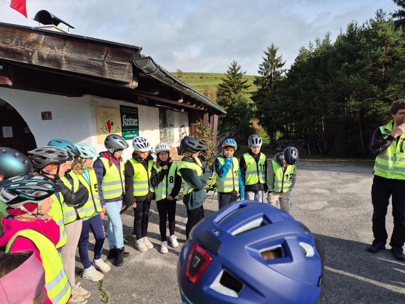 Anfang Oktober fand die 1. Radfahrübung für die 4. Stufe statt. Dafür kamen alle Kinder mit dem Fahrrad zur Schule. Nach der 1. Stunde ging es los: Gemeinsam radelten alle nach Untermieming, wo sich die Übungsrunde für die Radfahrübung befindet. Dort lernten die Kinder die Runde kennen und zeigten ihr Wissen in Verkehrserziehung. Im Frühjahr wird es dann die 2. Übung geben, damit die Kinder der 4. Stufe dann für die Radfahrprüfung gegen Schuljahresende perfekt vorbereitet sind.
