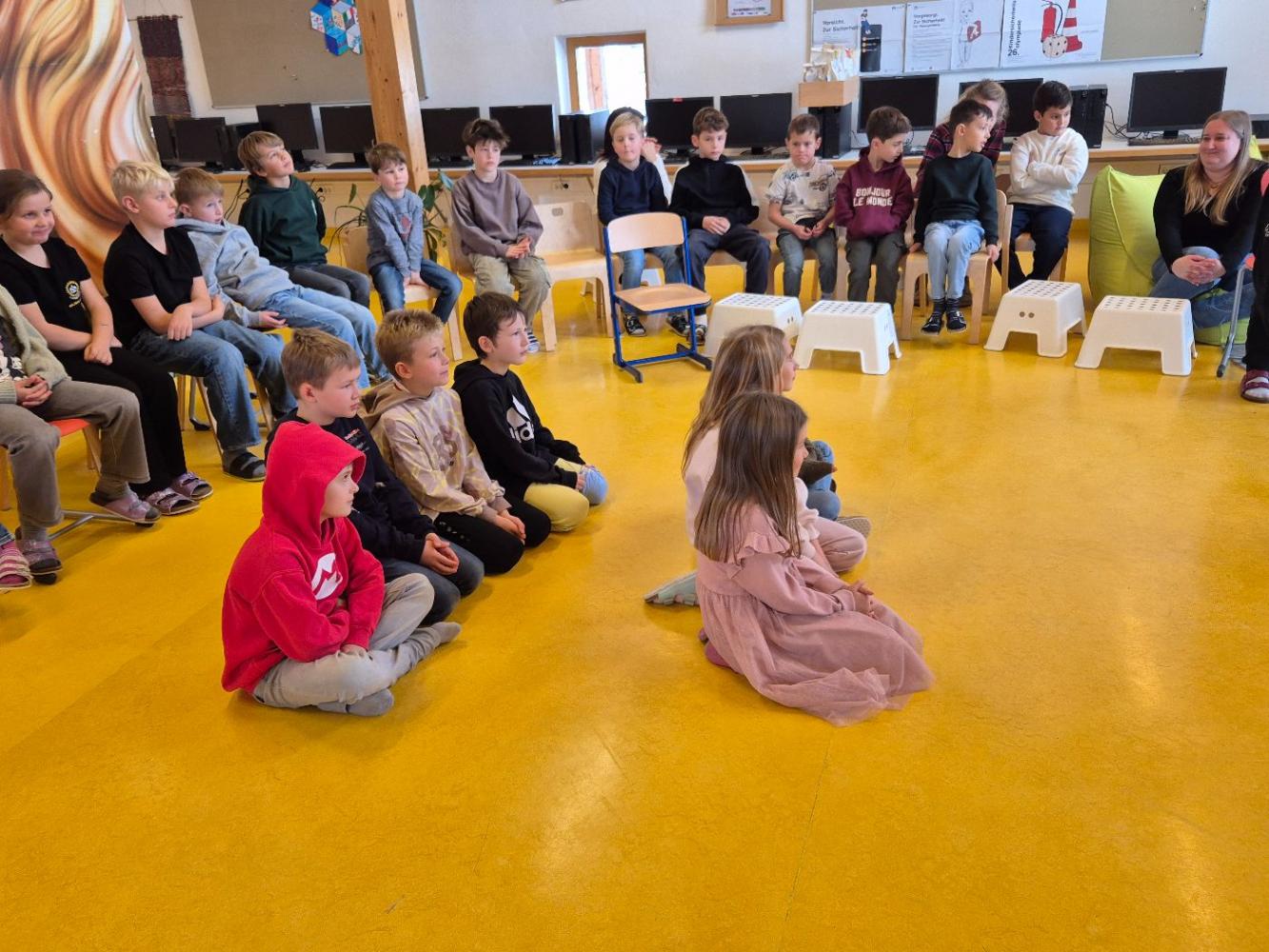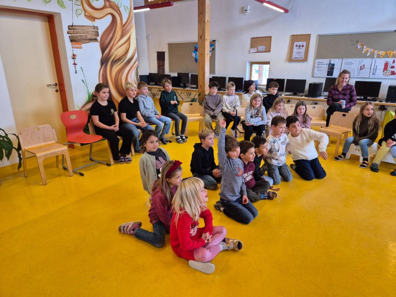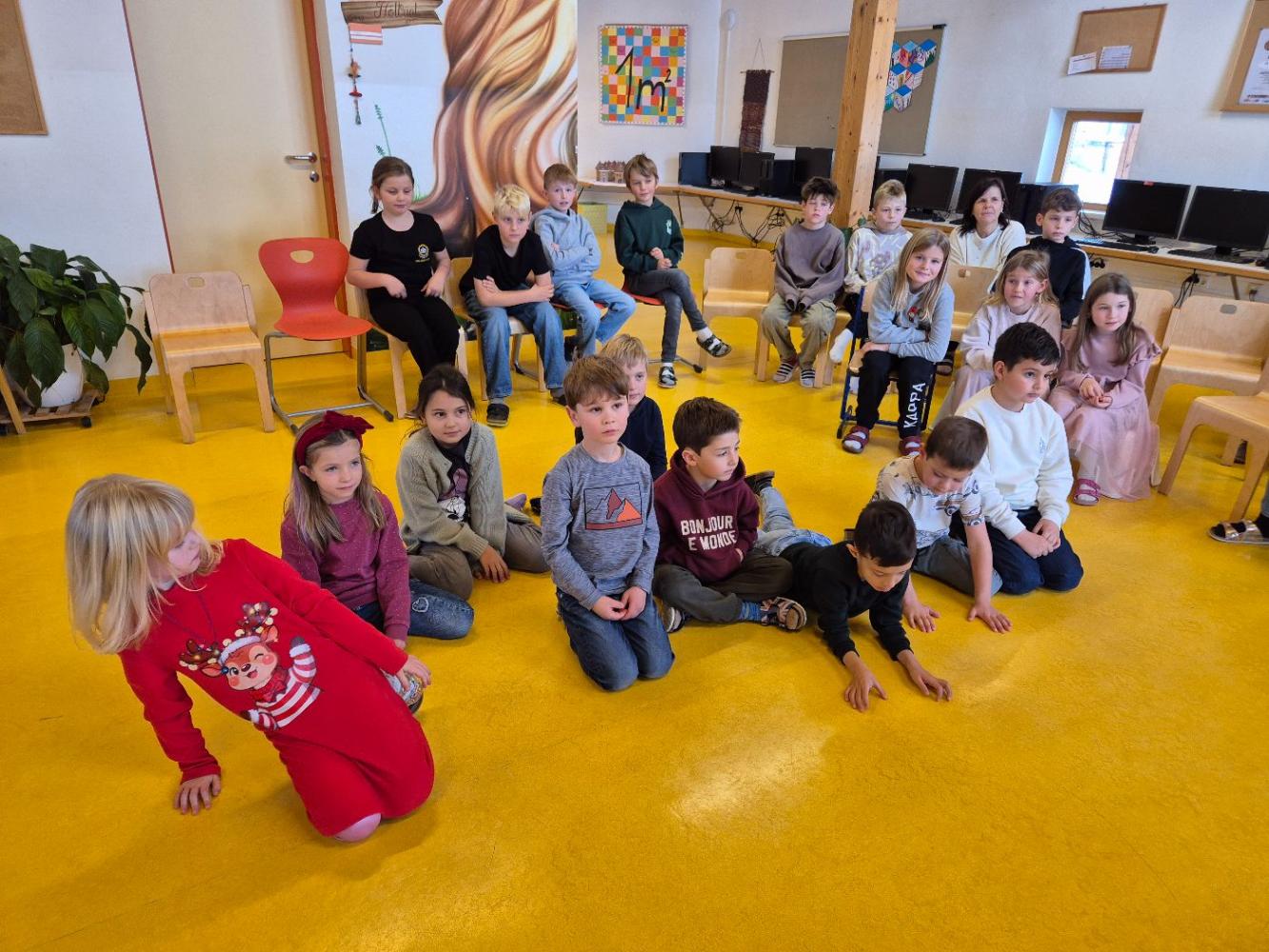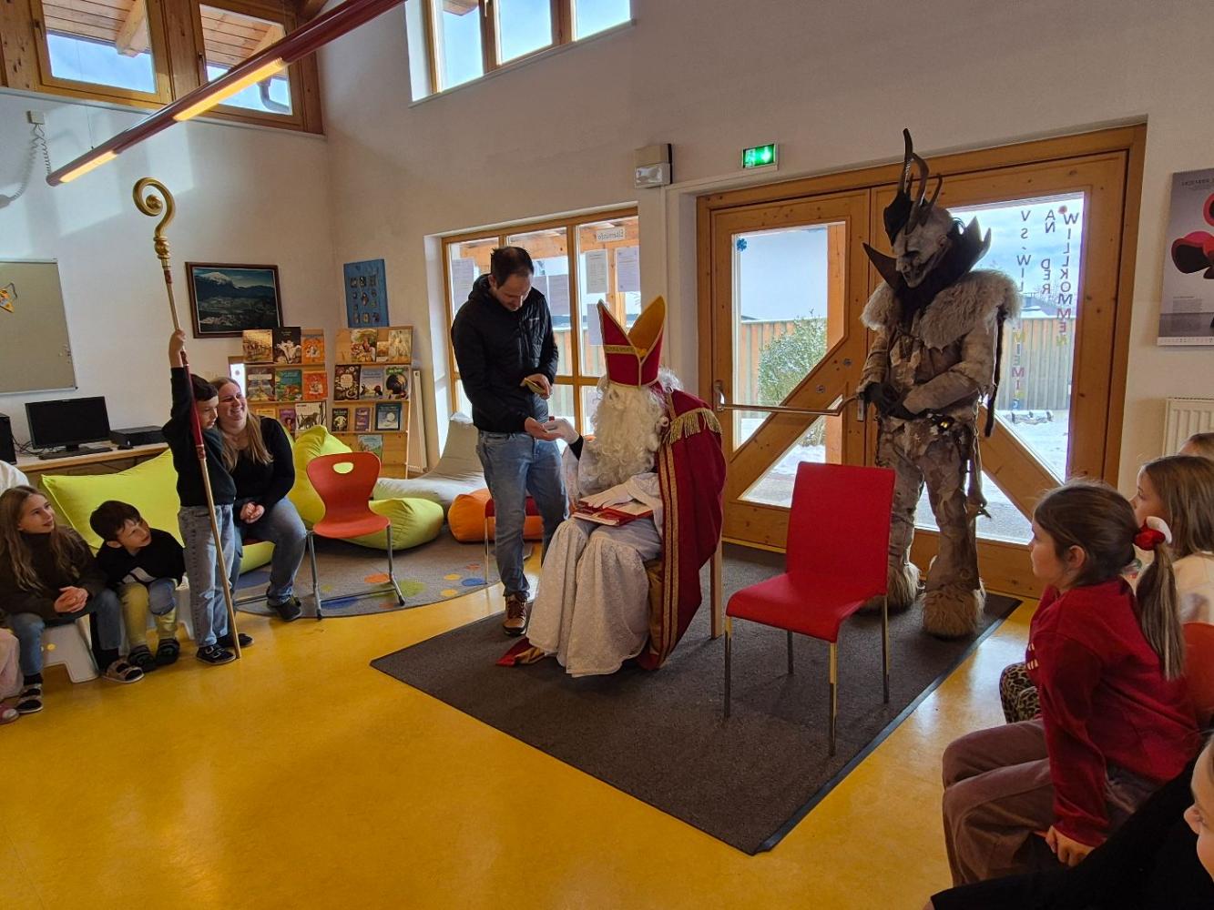 Auch heuer kam wieder der Nikolaus zu unseren braven Kindern in die Schule. Wir sangen ihm Lieder vor und die Kinder bekamen tolle Geschenke. Damit der Nikolaus in seinem Buch lesen konnte, durften einige Kinder abwechselns seinen Bischofsstab halten. Außerdem hatte er als Helfer einen Krampus dabei, was ein besonderes Highlight für manche Kinder war.