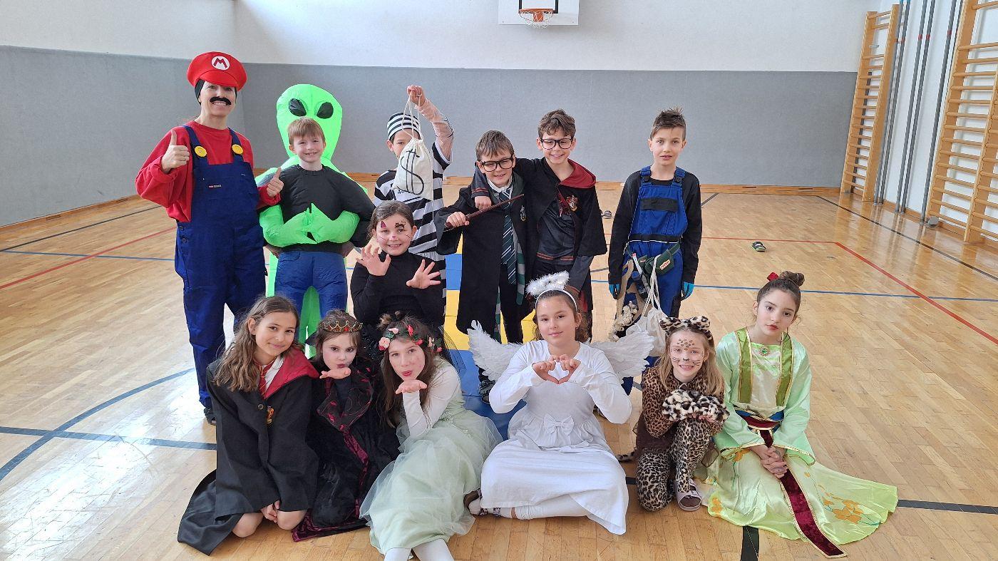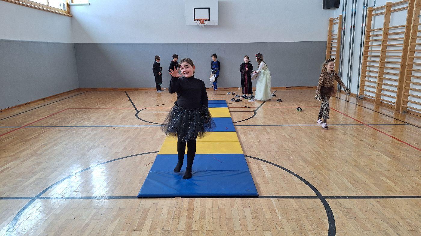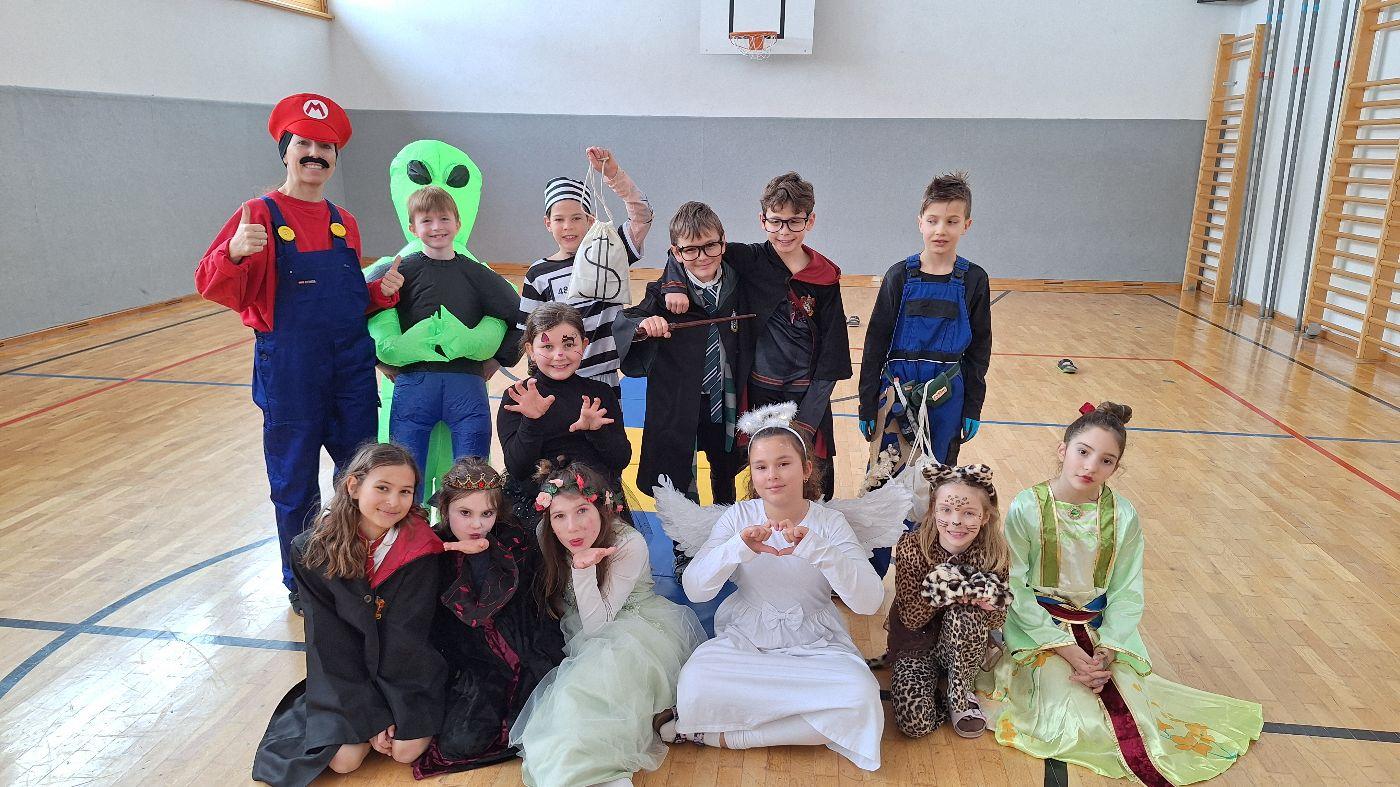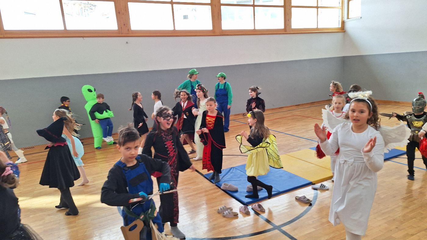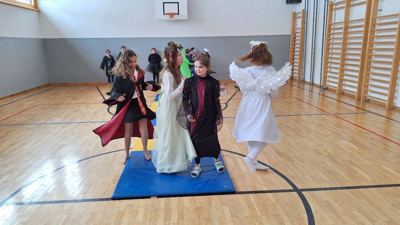 Am Faschingsdienstag kamen alle verkleidet in die Schule. Nach der Pause starteten wir mit unserer Faschingsfeier. Es gab Krapfen, die uns die Gemeinde spendierte (Danke!) und wir veranstalteten eine "Modenschau", bei der alle ihre Kostüme präsentieren konnten.