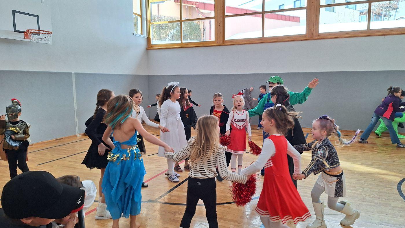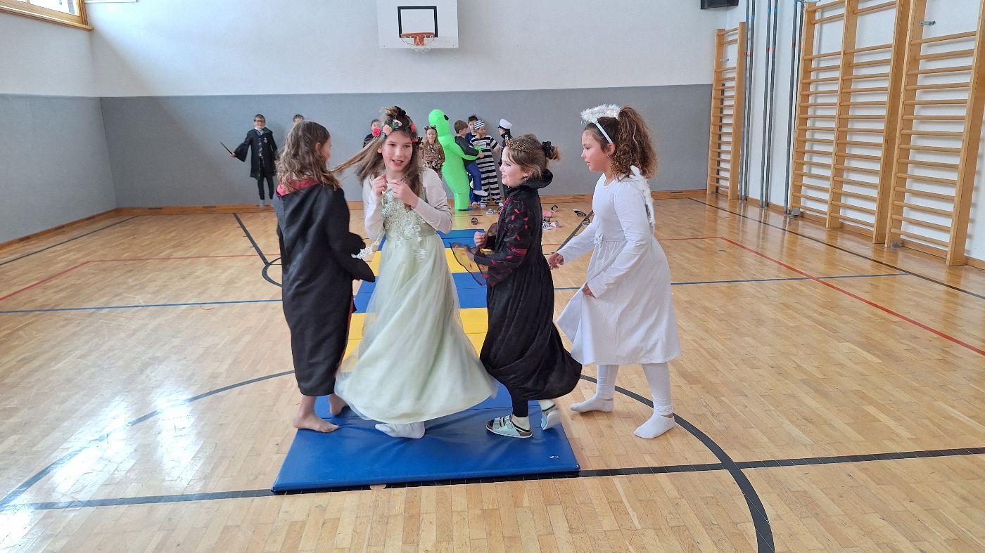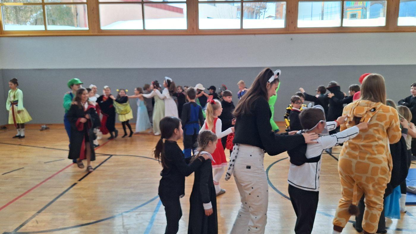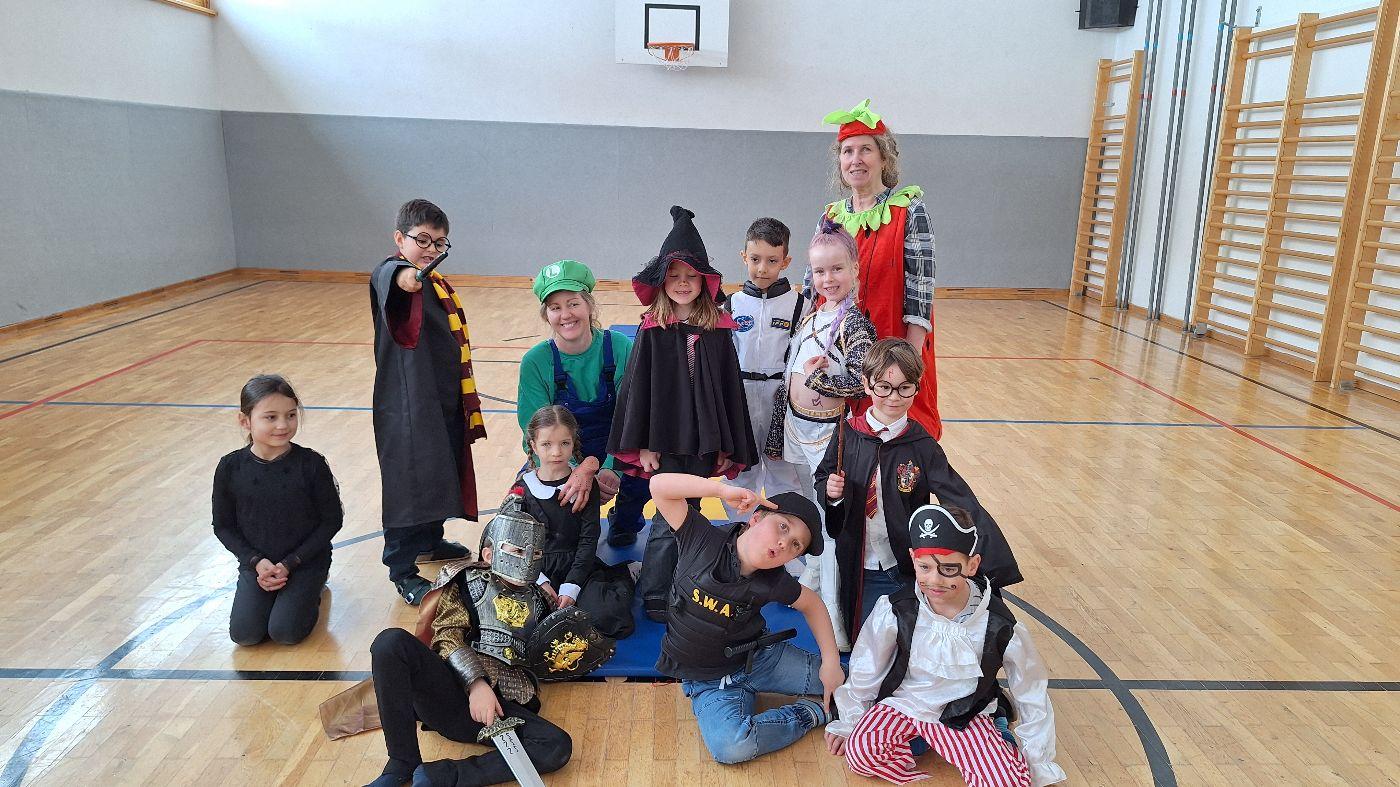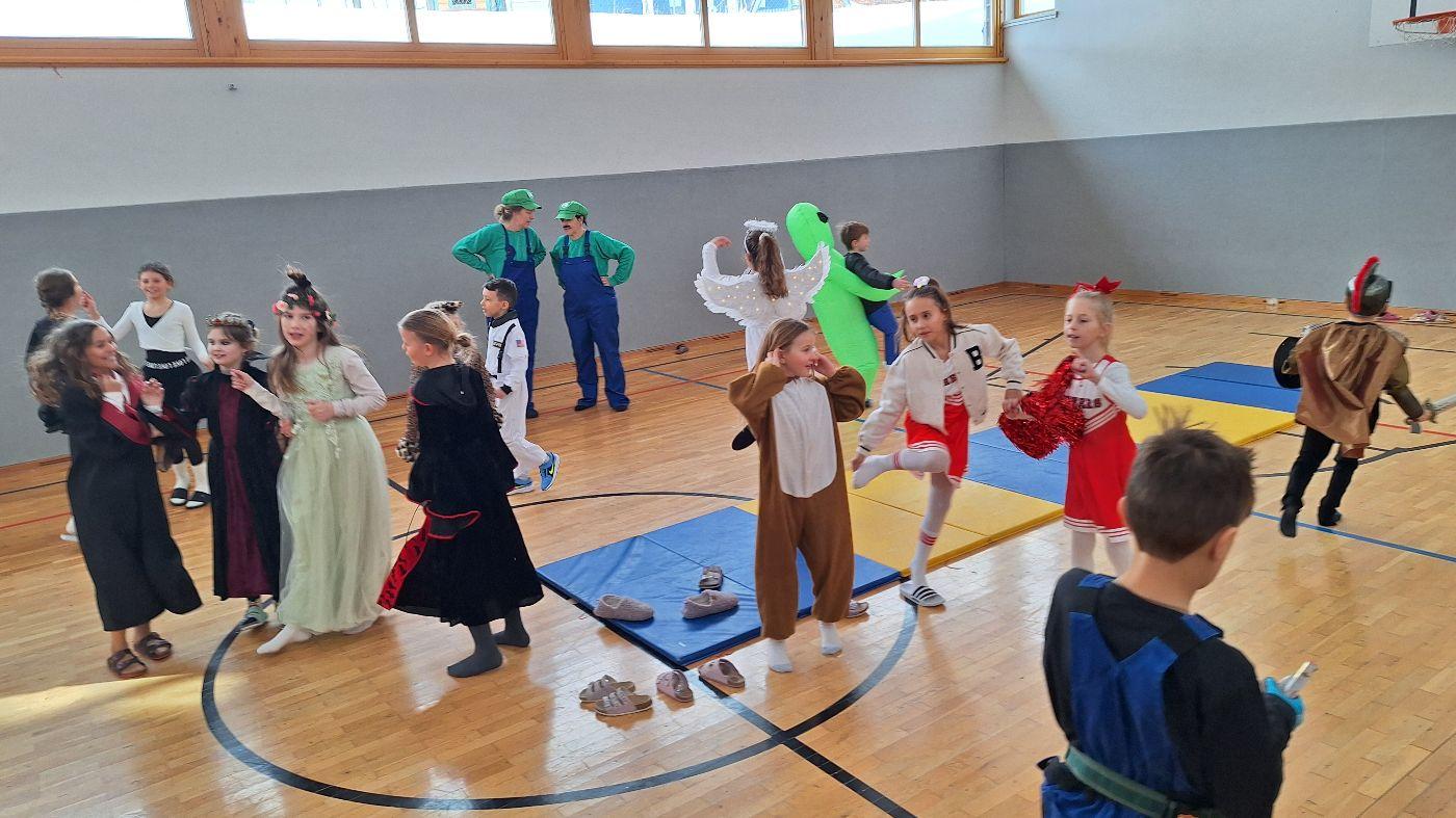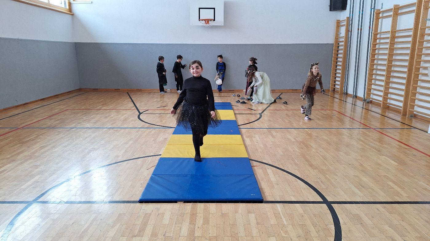 Am Faschingsdienstag kamen alle verkleidet in die Schule. Nach der Pause starteten wir mit unserer Faschingsfeier. Es gab Krapfen, die uns die Gemeinde spendierte (Danke!) und wir veranstalteten eine "Modenschau", bei der alle ihre Kostüme präsentieren konnten.
