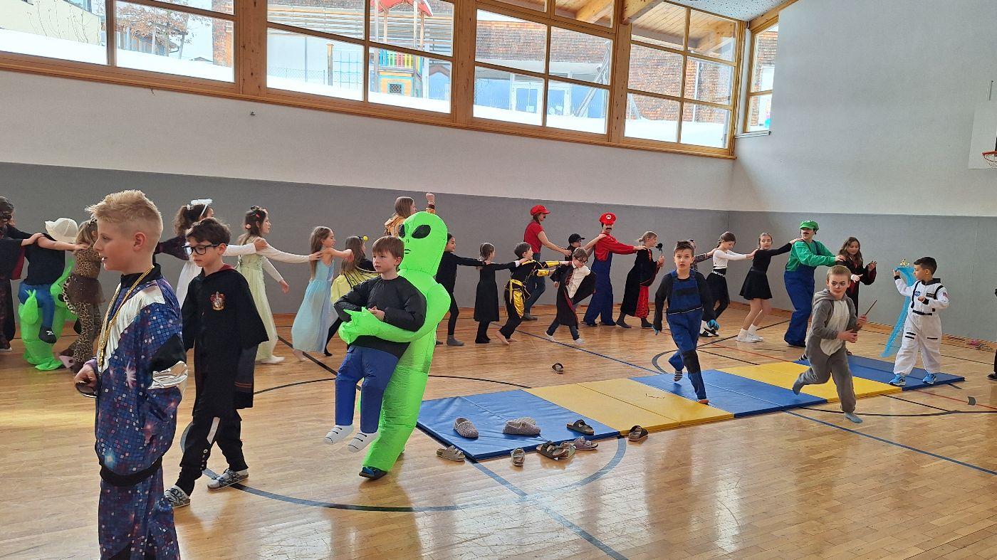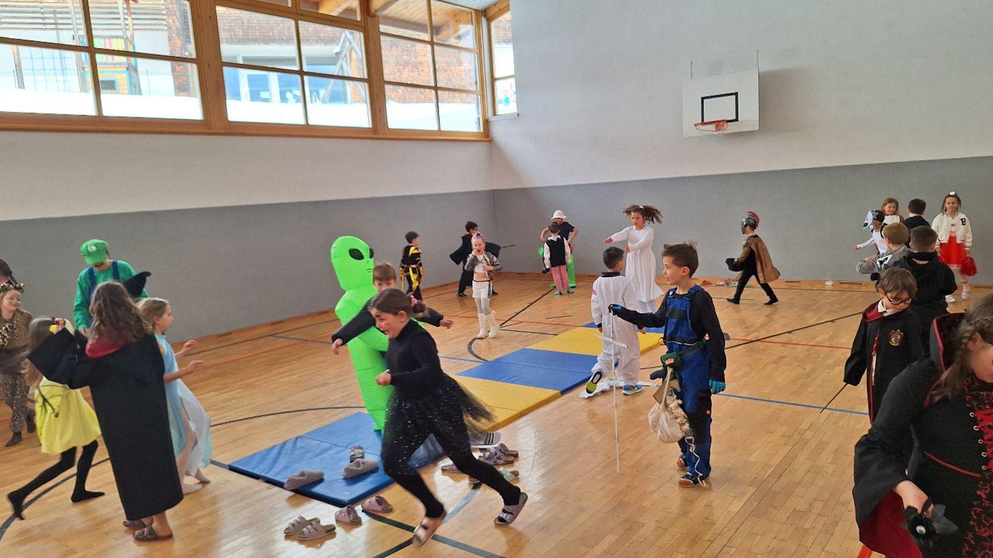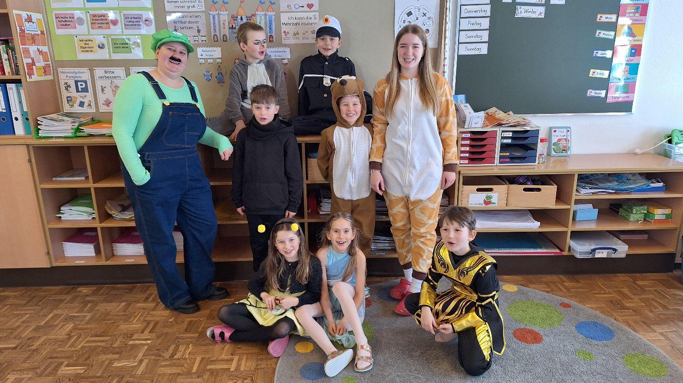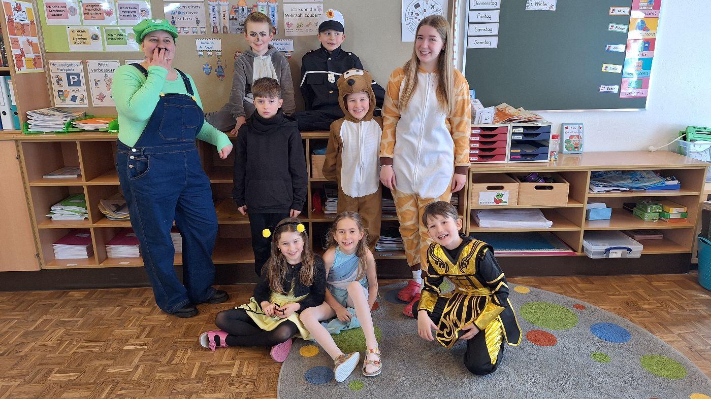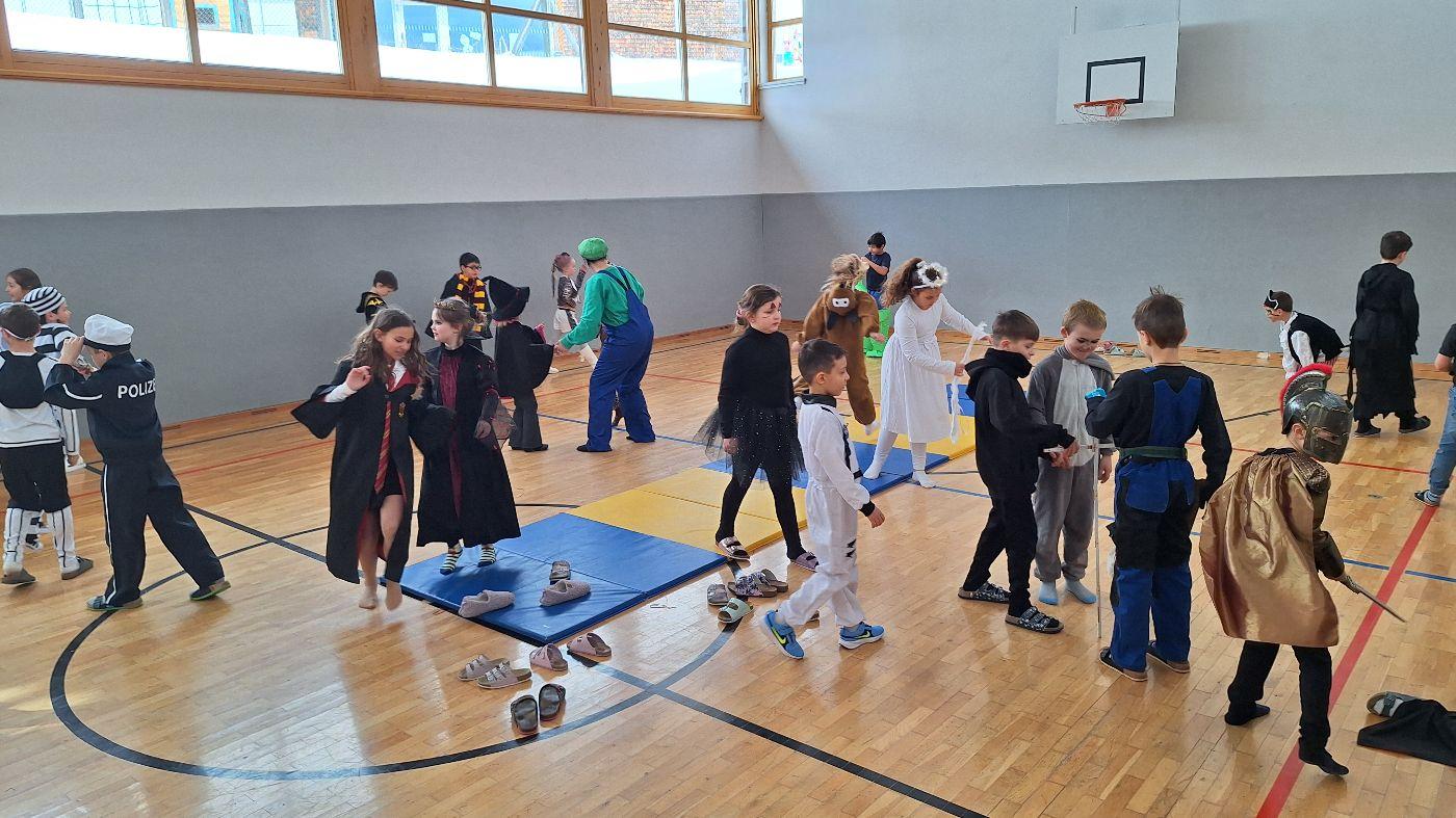 Am Faschingsdienstag kamen alle verkleidet in die Schule. Nach der Pause starteten wir mit unserer Faschingsfeier. Es gab Krapfen, die uns die Gemeinde spendierte (Danke!) und wir veranstalteten eine "Modenschau", bei der alle ihre Kostüme präsentieren konnten.