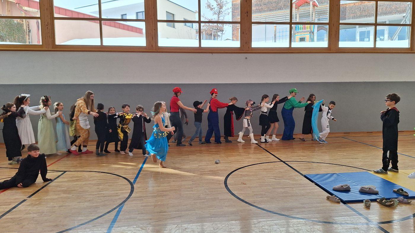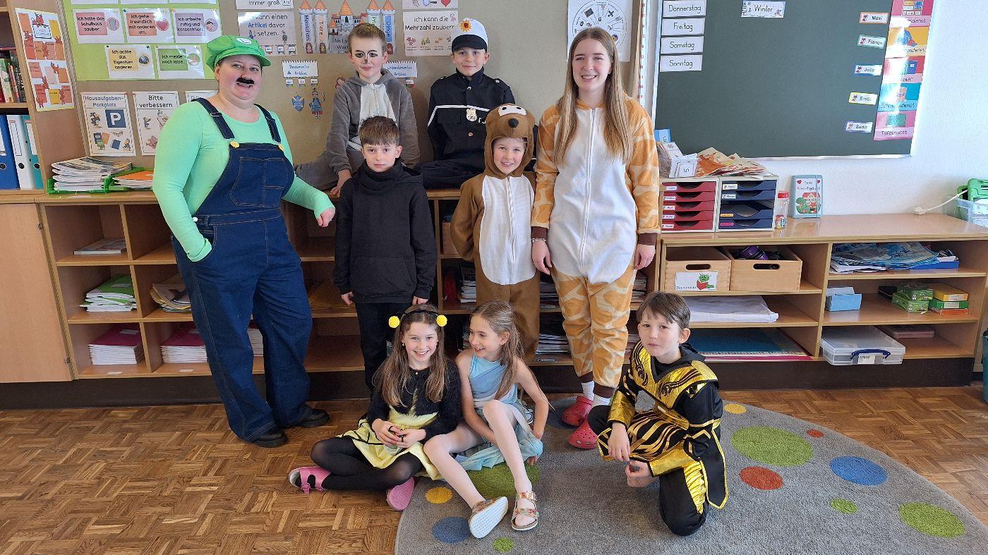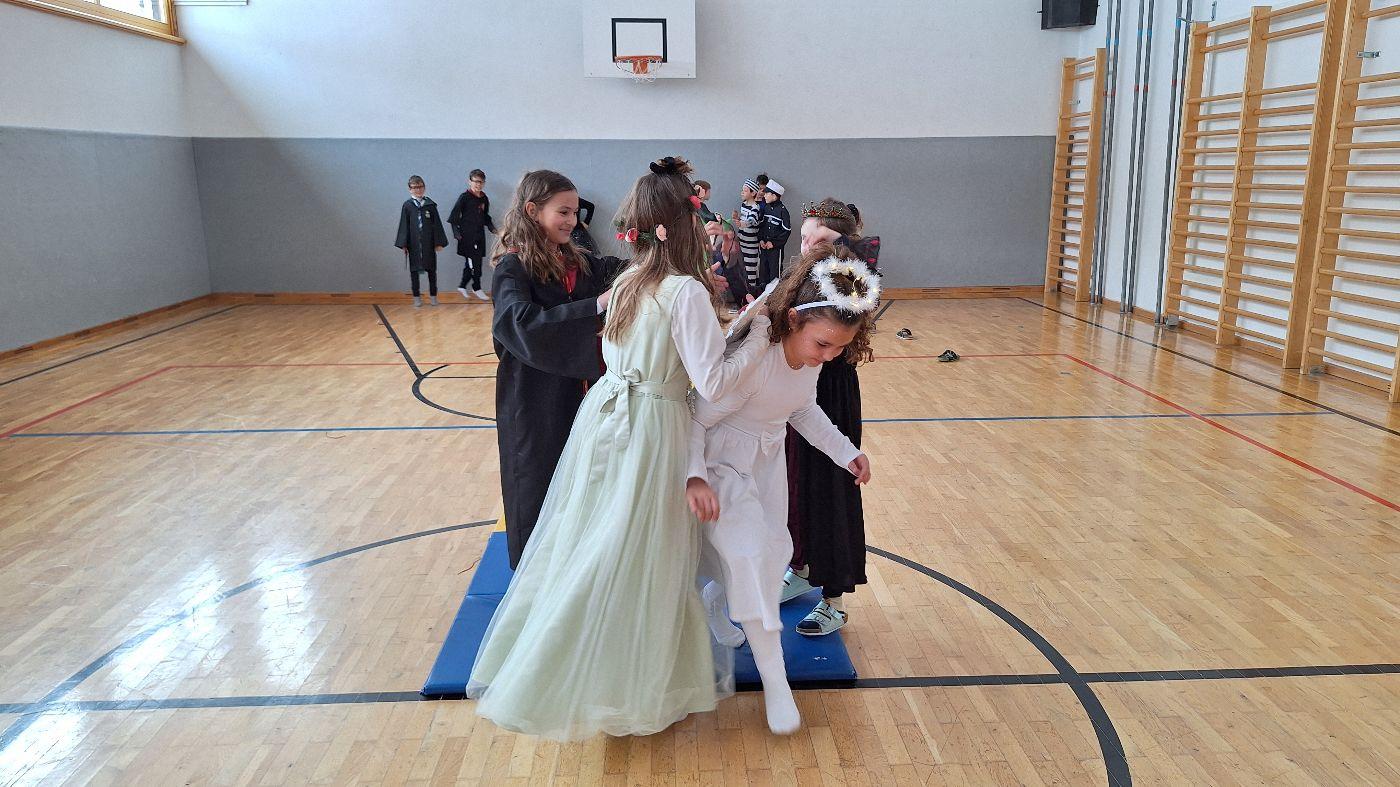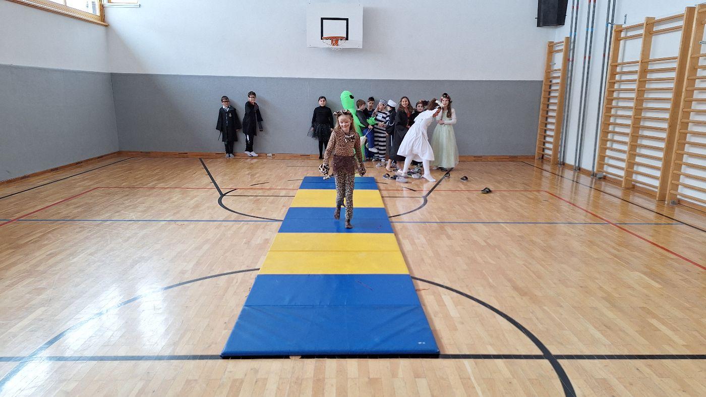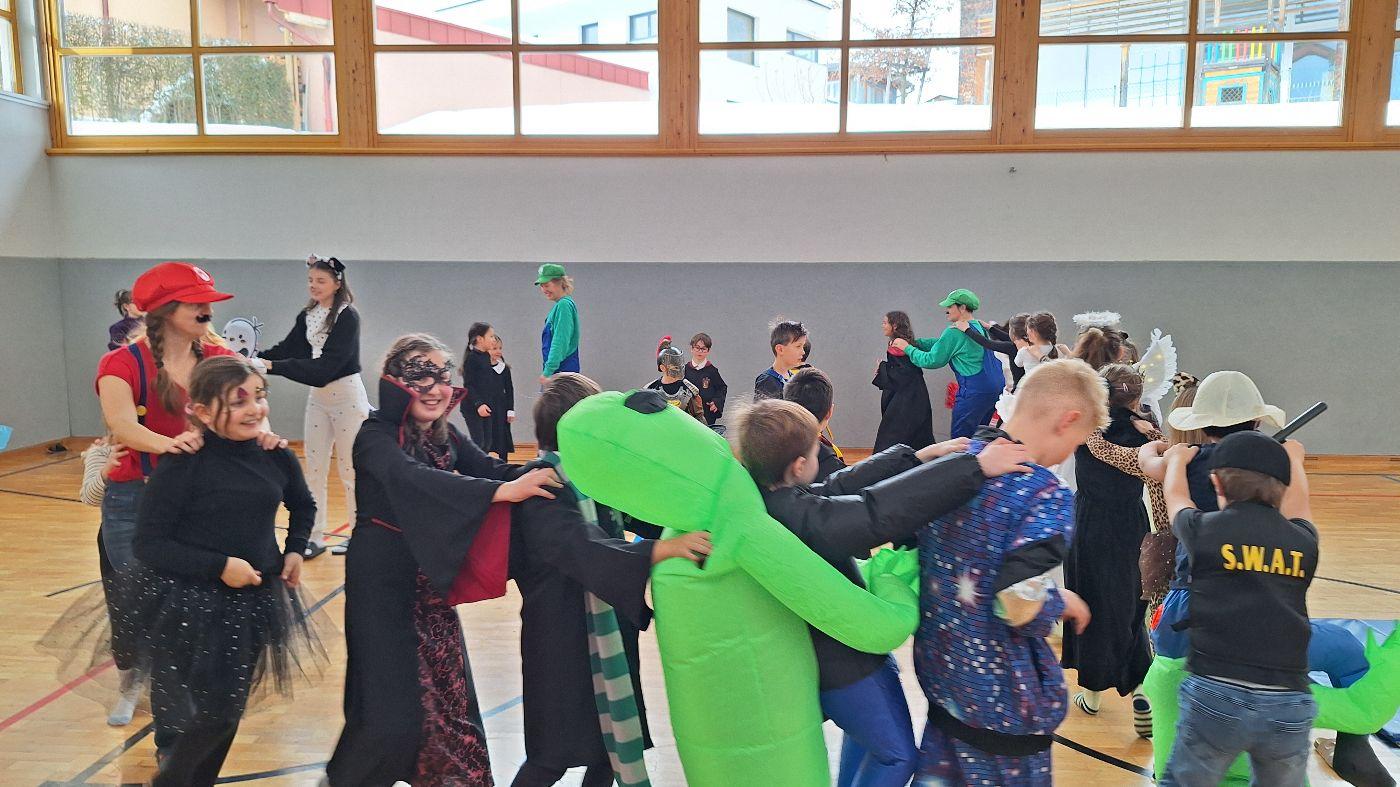 Am Faschingsdienstag kamen alle verkleidet in die Schule. Nach der Pause starteten wir mit unserer Faschingsfeier. Es gab Krapfen, die uns die Gemeinde spendierte (Danke!) und wir veranstalteten eine "Modenschau", bei der alle ihre Kostüme präsentieren konnten.