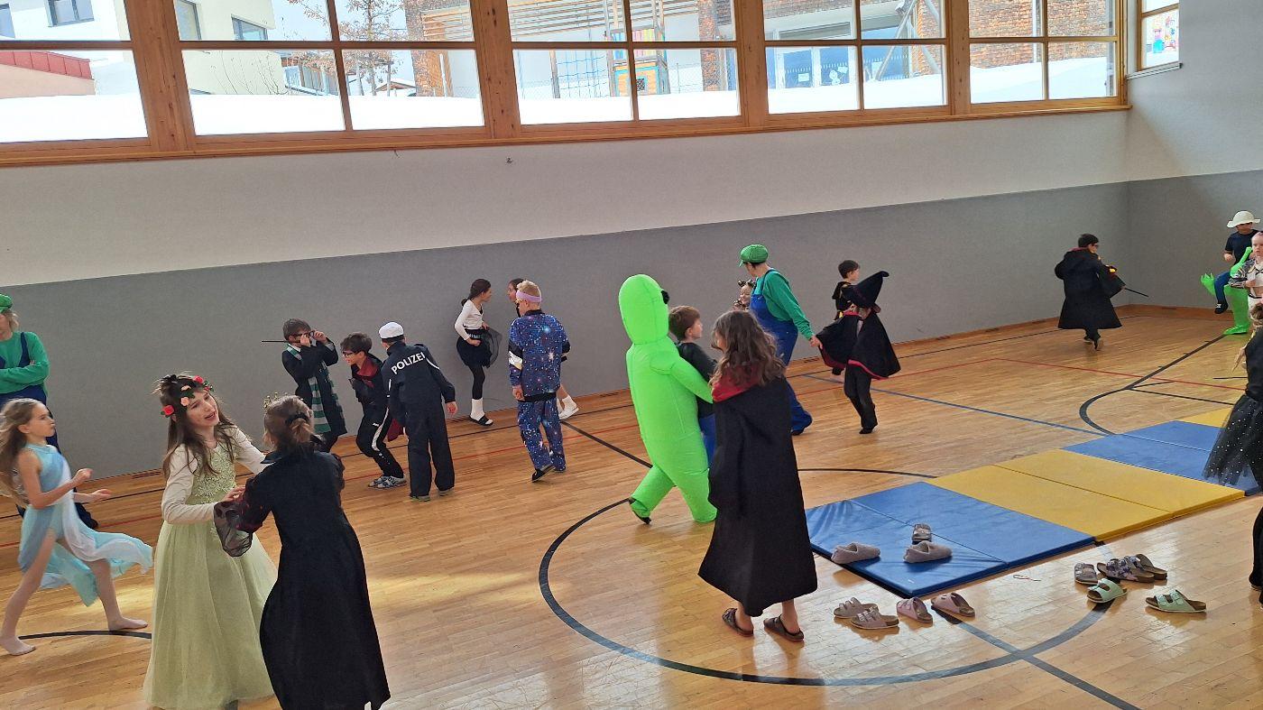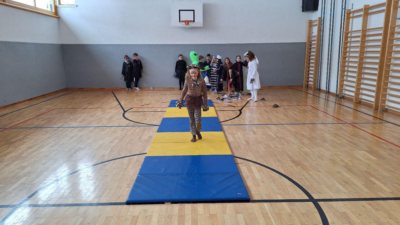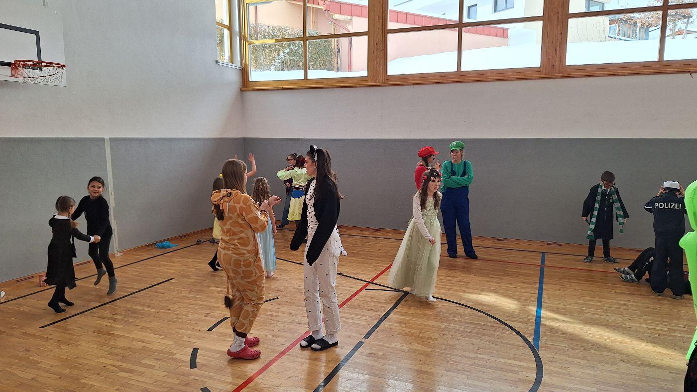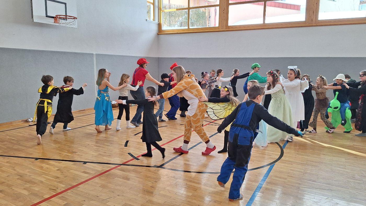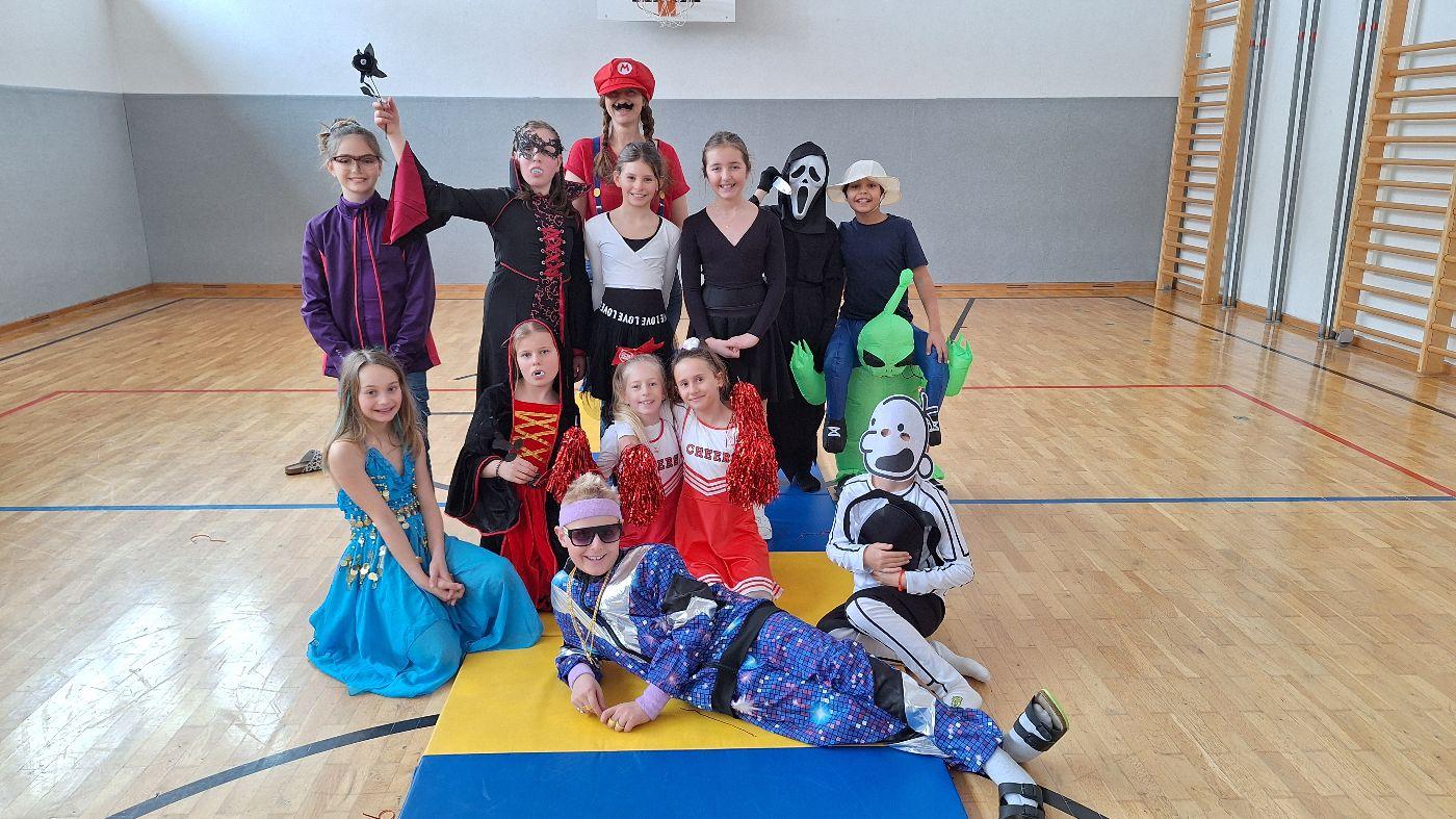 Am Faschingsdienstag kamen alle verkleidet in die Schule. Nach der Pause starteten wir mit unserer Faschingsfeier. Es gab Krapfen, die uns die Gemeinde spendierte (Danke!) und wir veranstalteten eine "Modenschau", bei der alle ihre Kostüme präsentieren konnten.