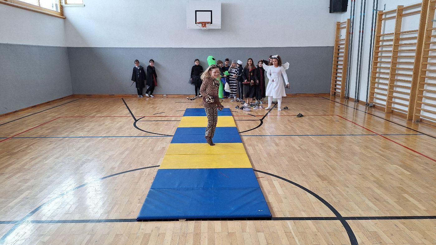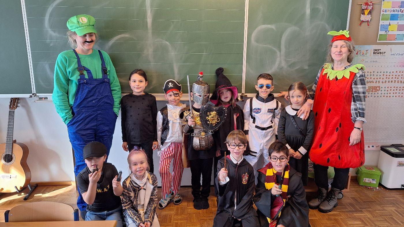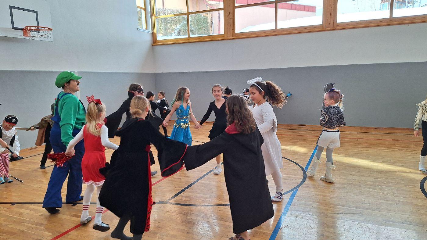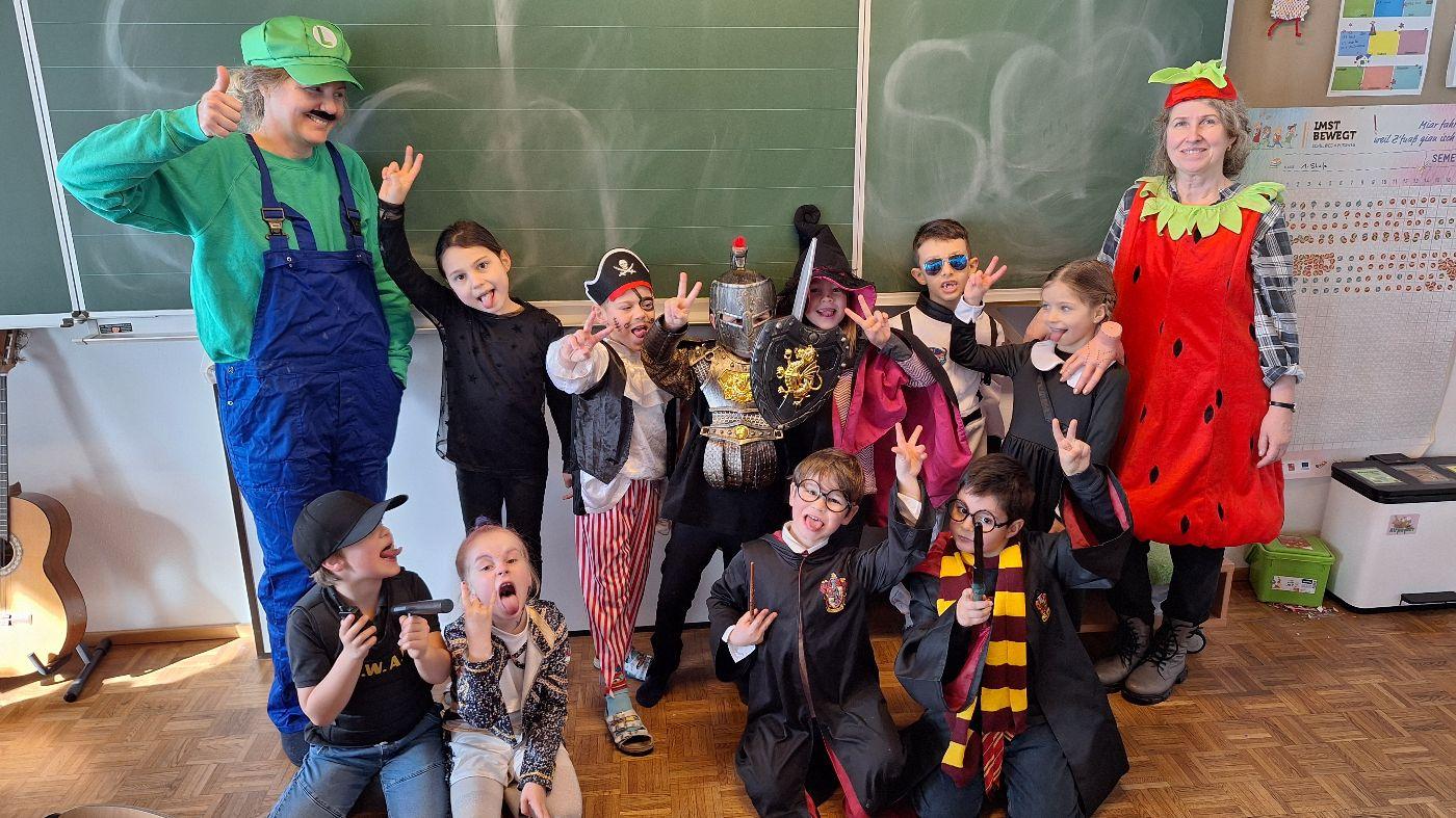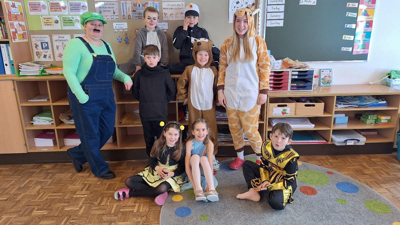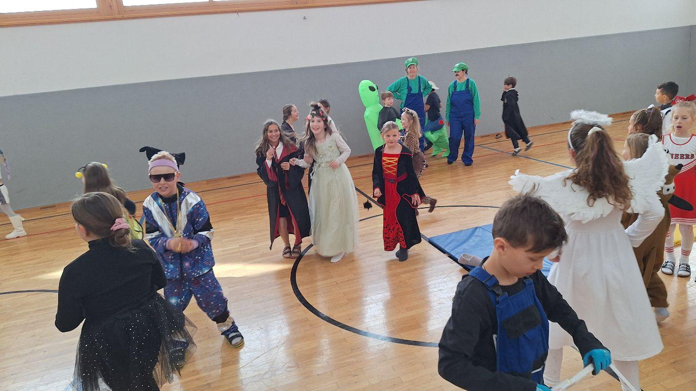 Am Faschingsdienstag kamen alle verkleidet in die Schule. Nach der Pause starteten wir mit unserer Faschingsfeier. Es gab Krapfen, die uns die Gemeinde spendierte (Danke!) und wir veranstalteten eine "Modenschau", bei der alle ihre Kostüme präsentieren konnten.