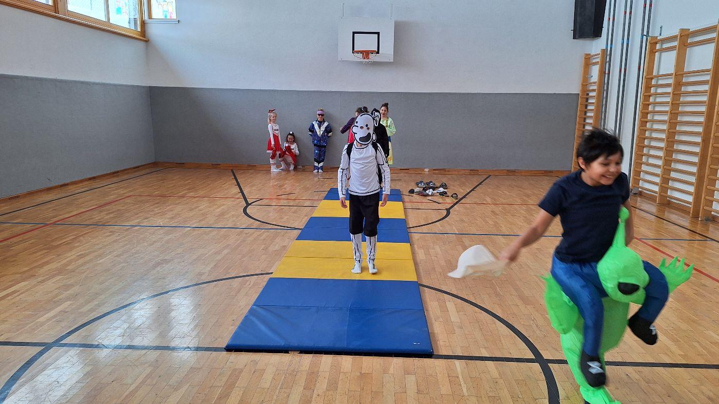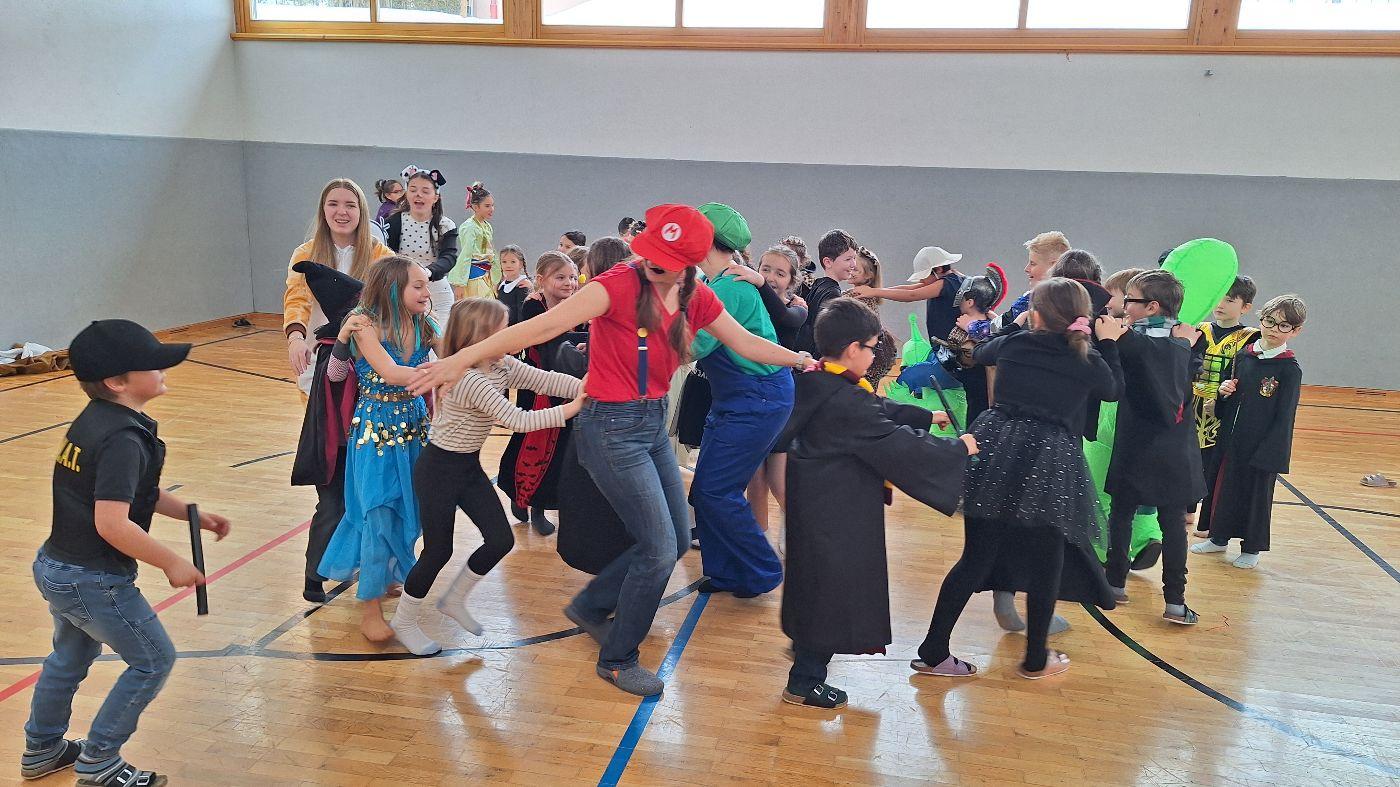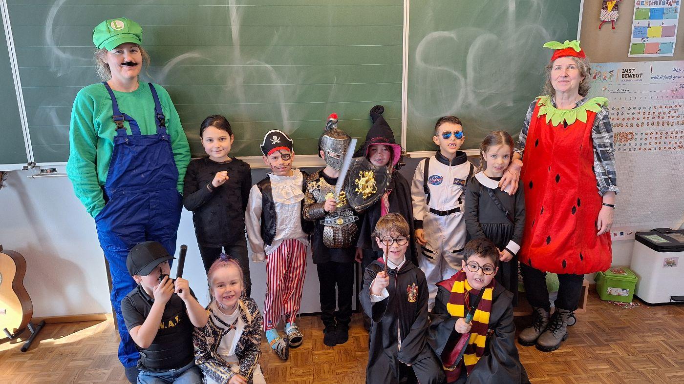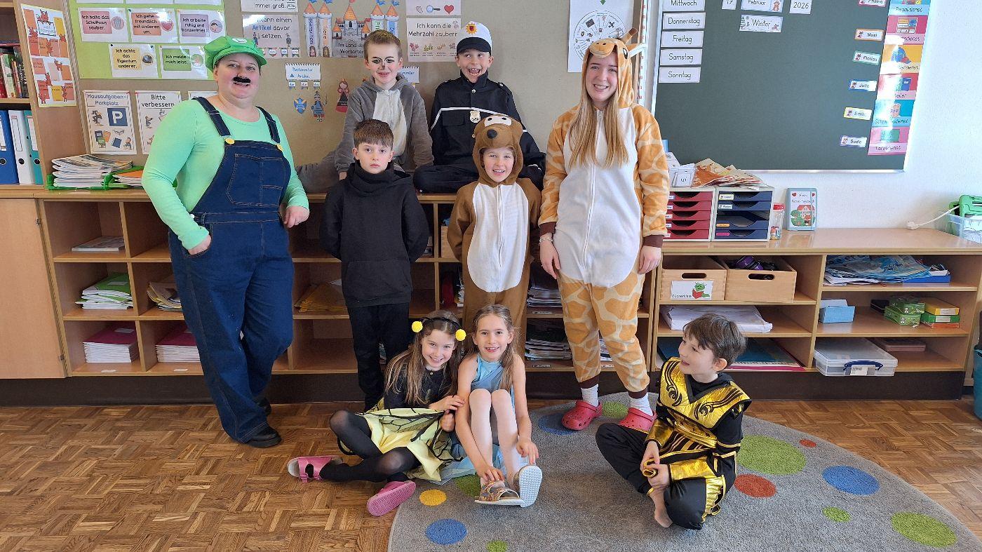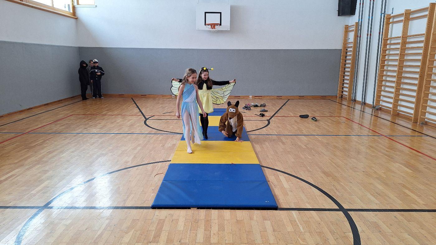 Am Faschingsdienstag kamen alle verkleidet in die Schule. Nach der Pause starteten wir mit unserer Faschingsfeier. Es gab Krapfen, die uns die Gemeinde spendierte (Danke!) und wir veranstalteten eine "Modenschau", bei der alle ihre Kostüme präsentieren konnten.