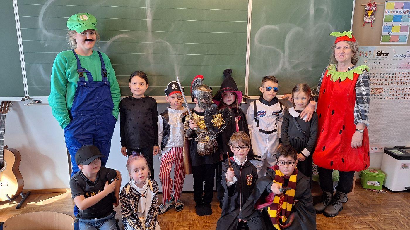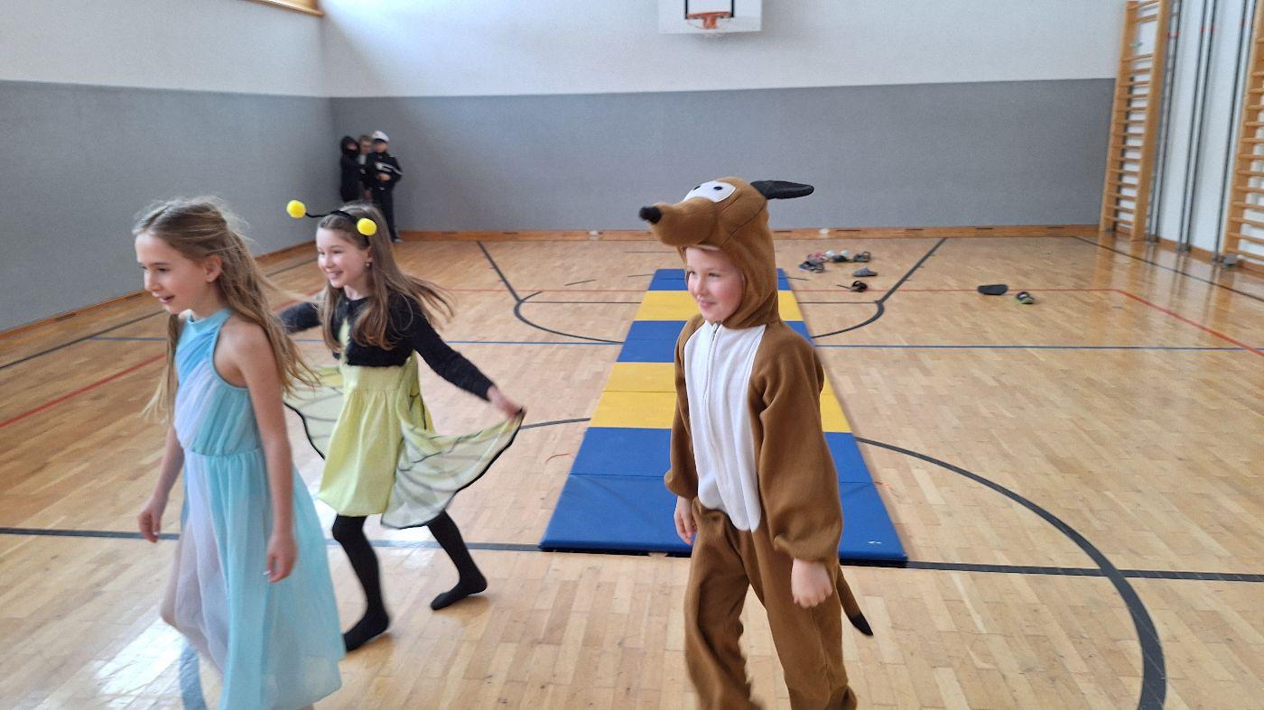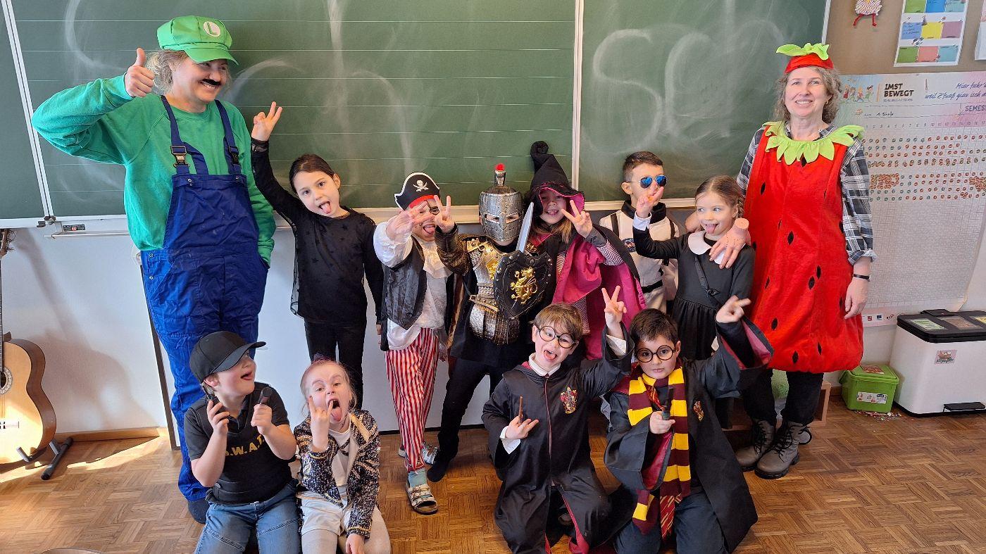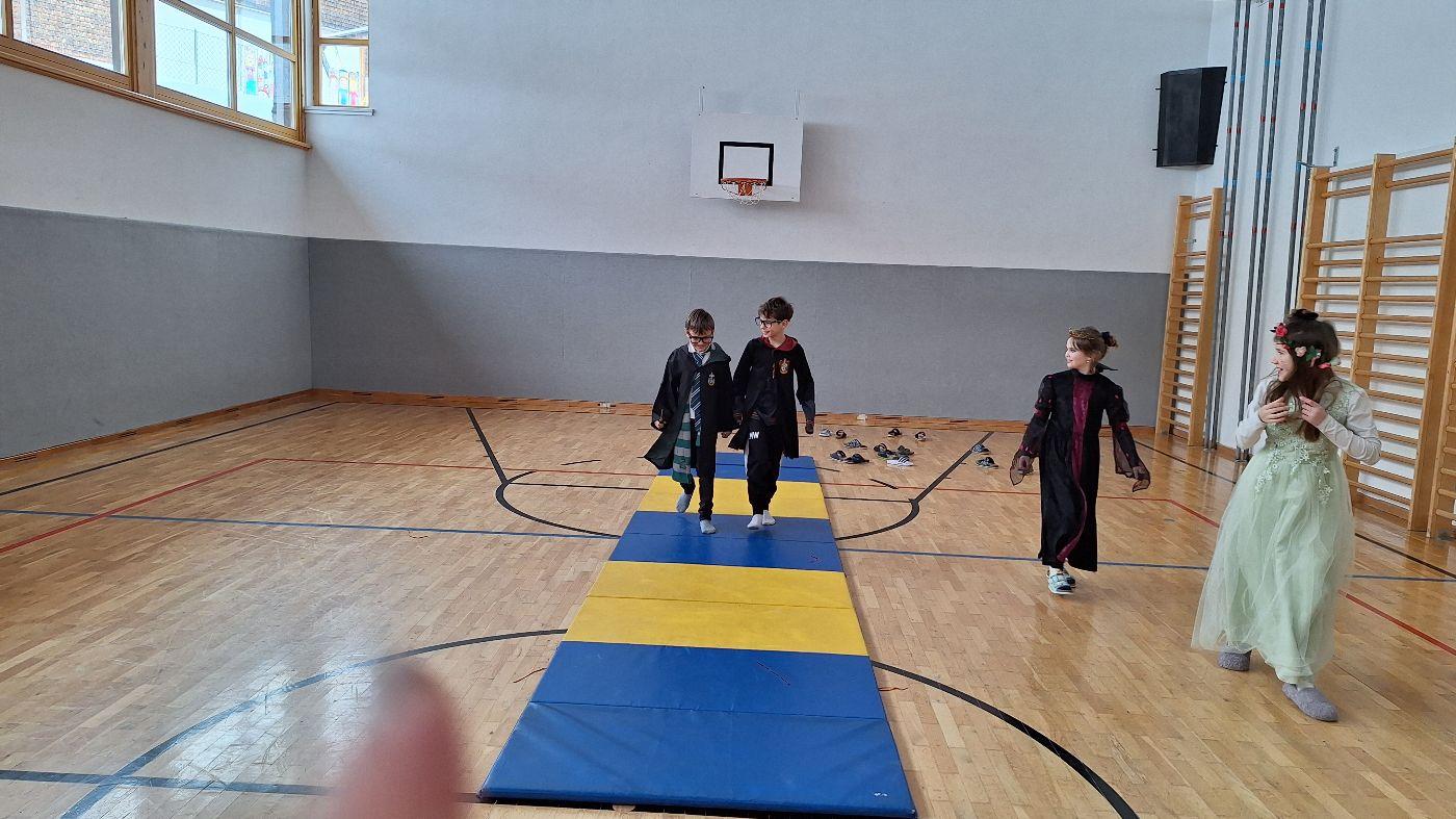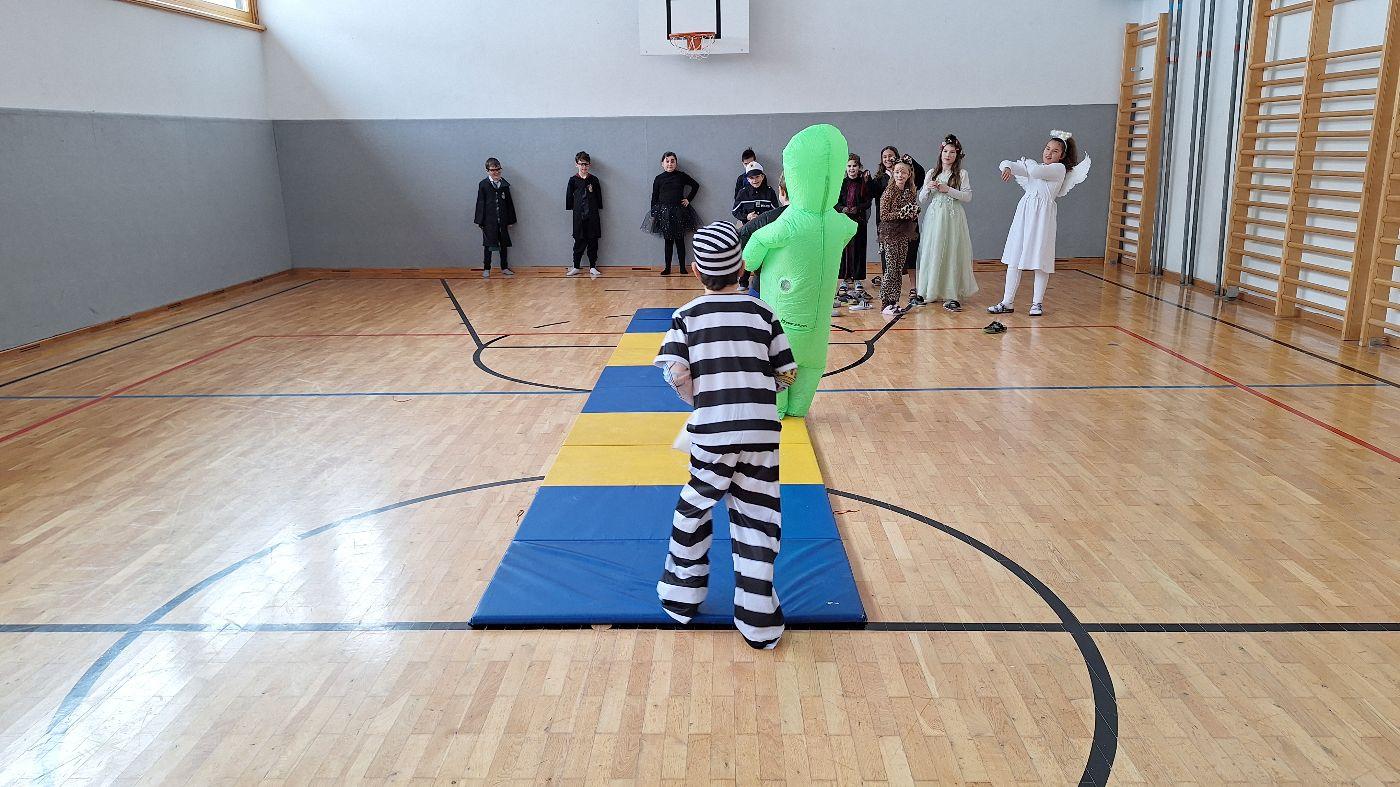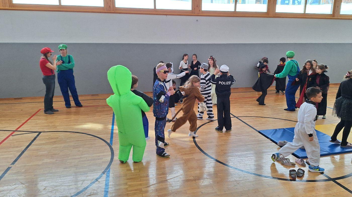Am Faschingsdienstag kamen alle verkleidet in die Schule. Nach der Pause starteten wir mit unserer Faschingsfeier. Es gab Krapfen, die uns die Gemeinde spendierte (Danke!) und wir veranstalteten eine "Modenschau", bei der alle ihre Kostüme präsentieren konnten.