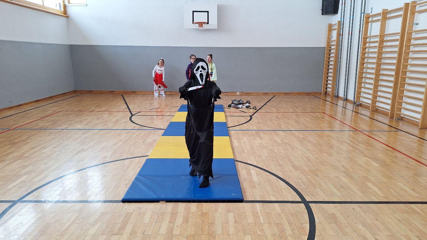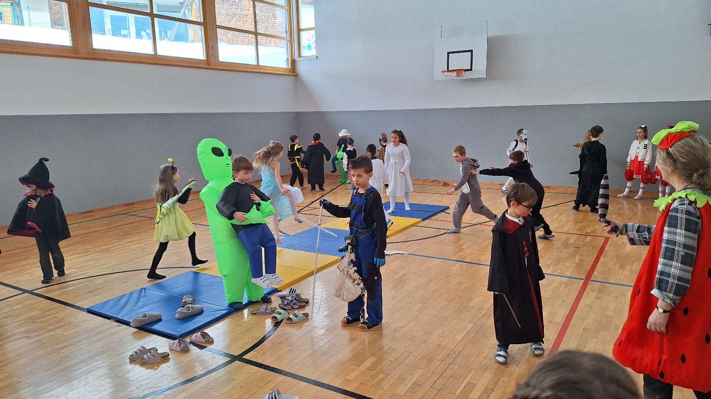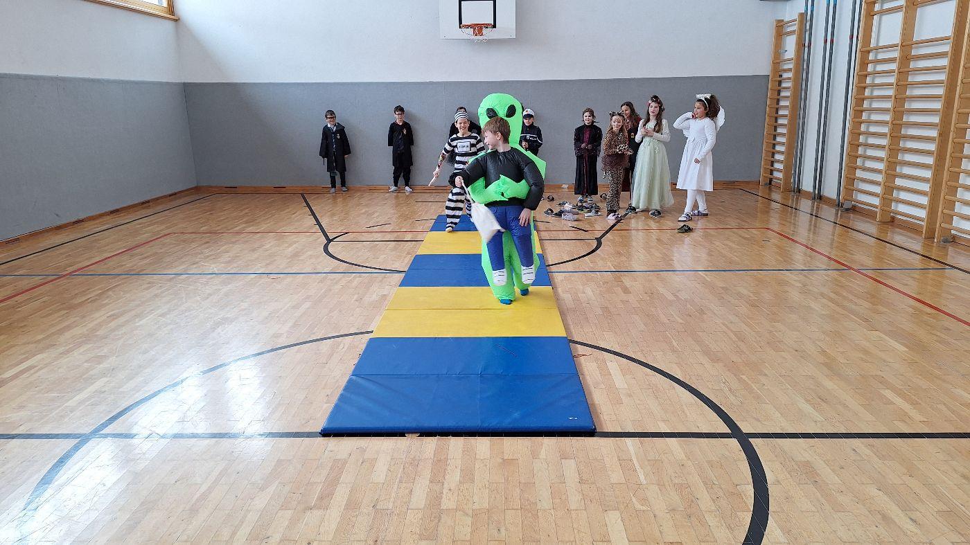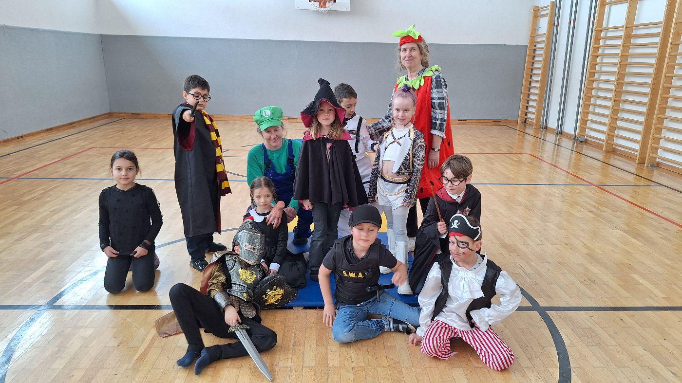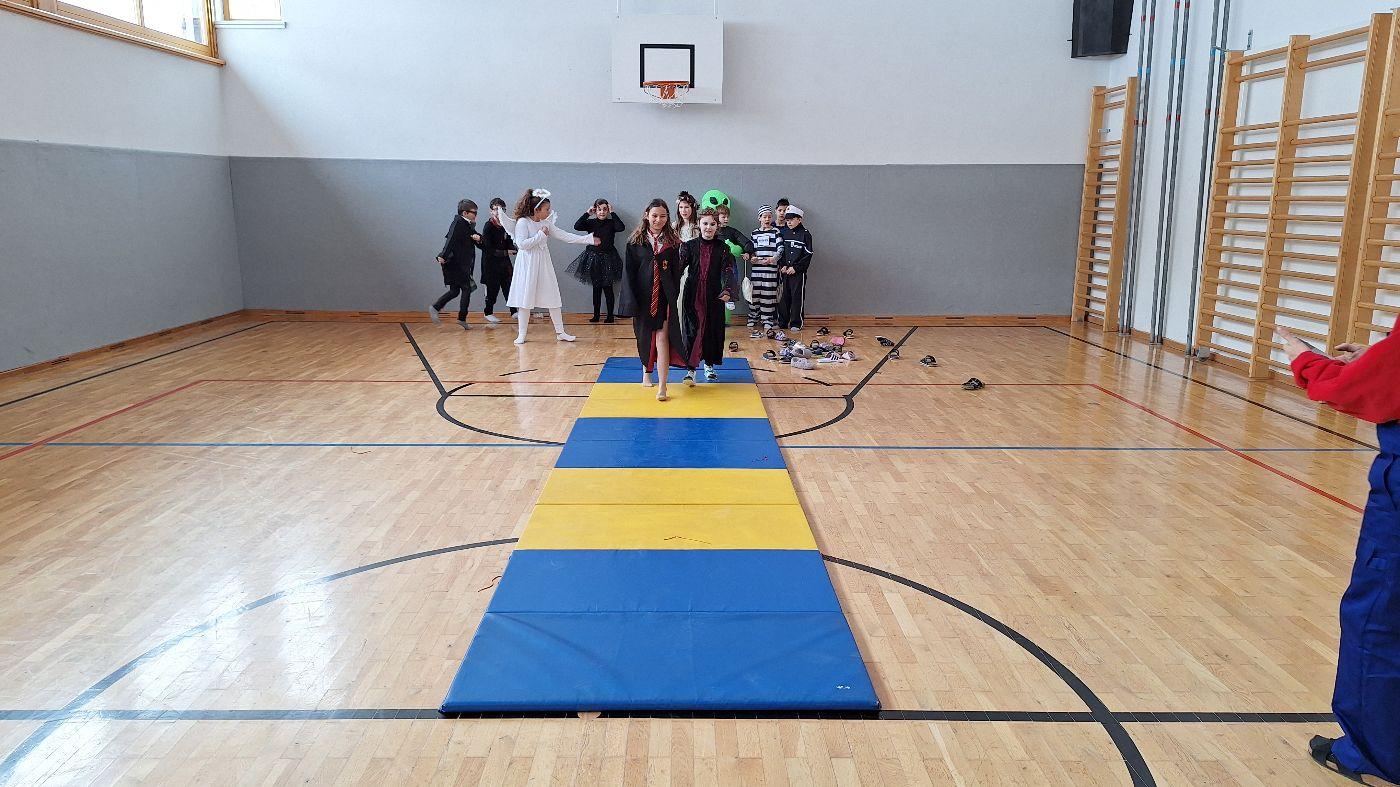 Am Faschingsdienstag kamen alle verkleidet in die Schule. Nach der Pause starteten wir mit unserer Faschingsfeier. Es gab Krapfen, die uns die Gemeinde spendierte (Danke!) und wir veranstalteten eine "Modenschau", bei der alle ihre Kostüme präsentieren konnten.