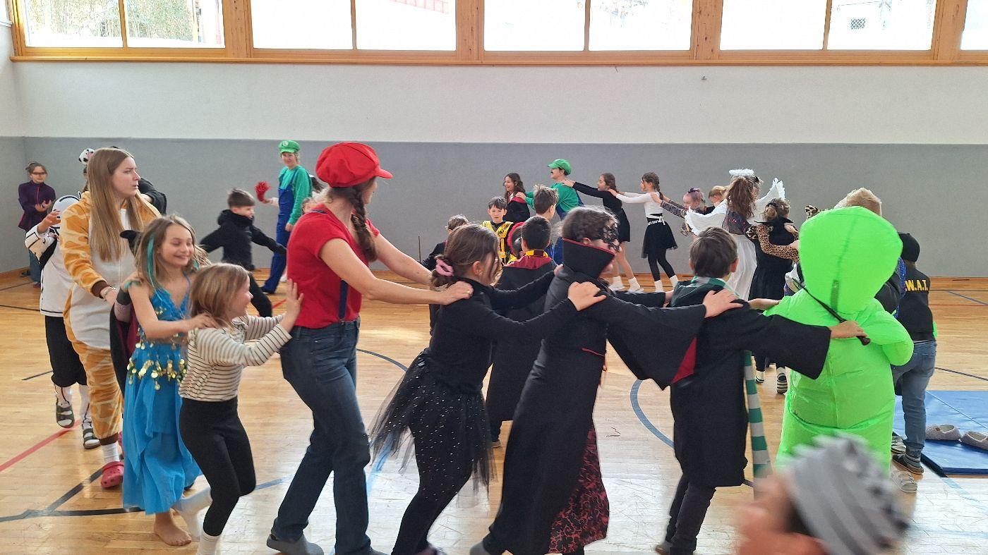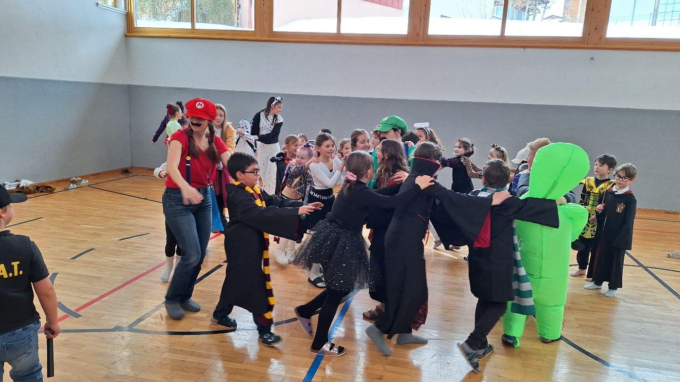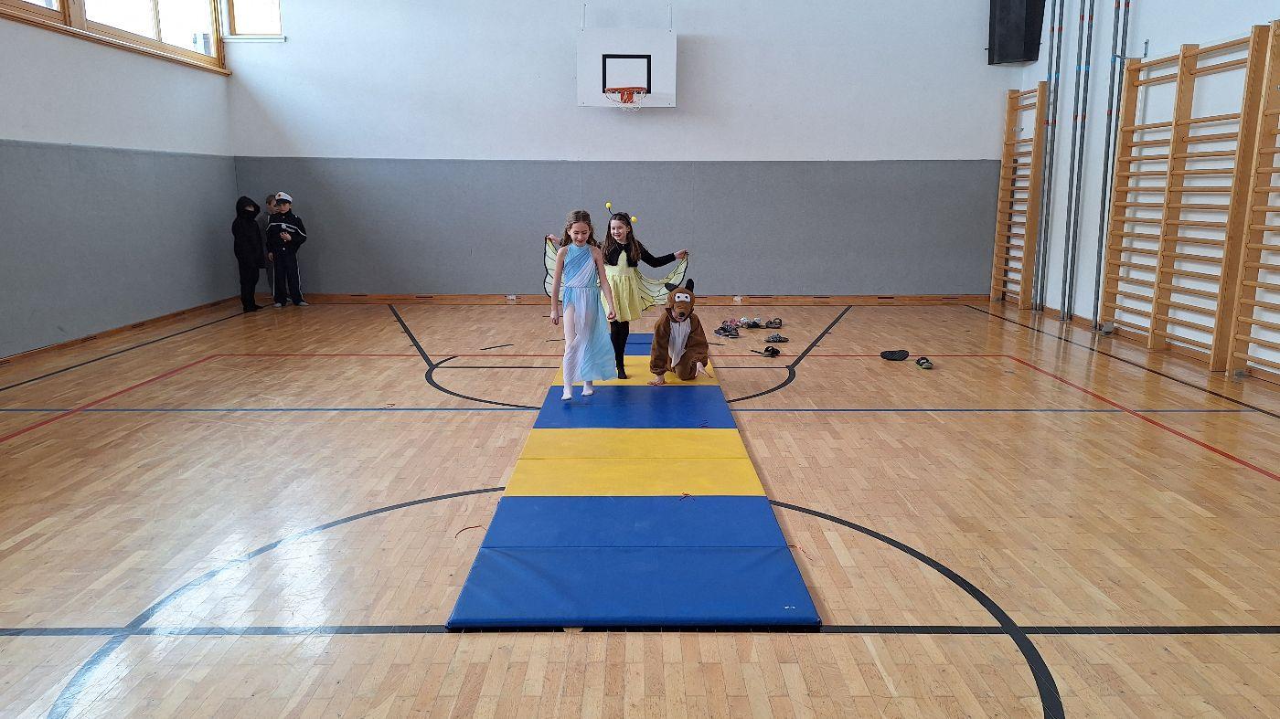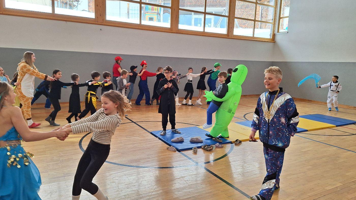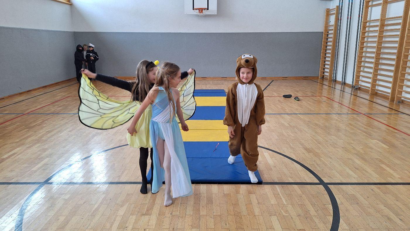 Am Faschingsdienstag kamen alle verkleidet in die Schule. Nach der Pause starteten wir mit unserer Faschingsfeier. Es gab Krapfen, die uns die Gemeinde spendierte (Danke!) und wir veranstalteten eine "Modenschau", bei der alle ihre Kostüme präsentieren konnten.