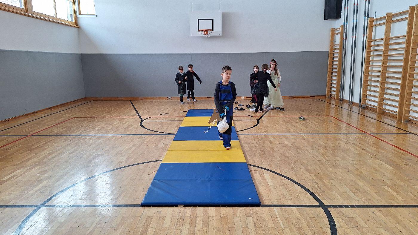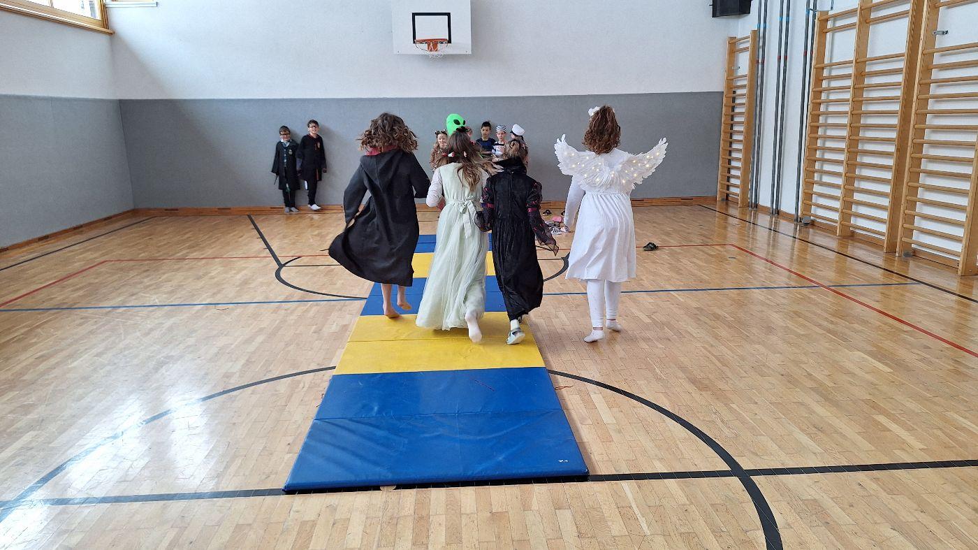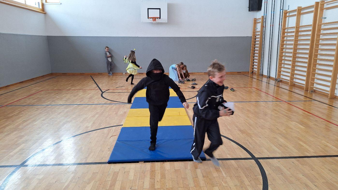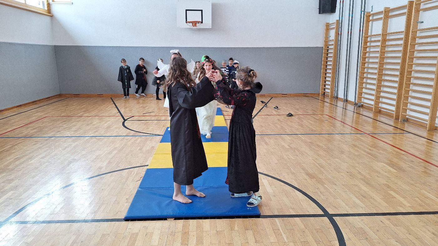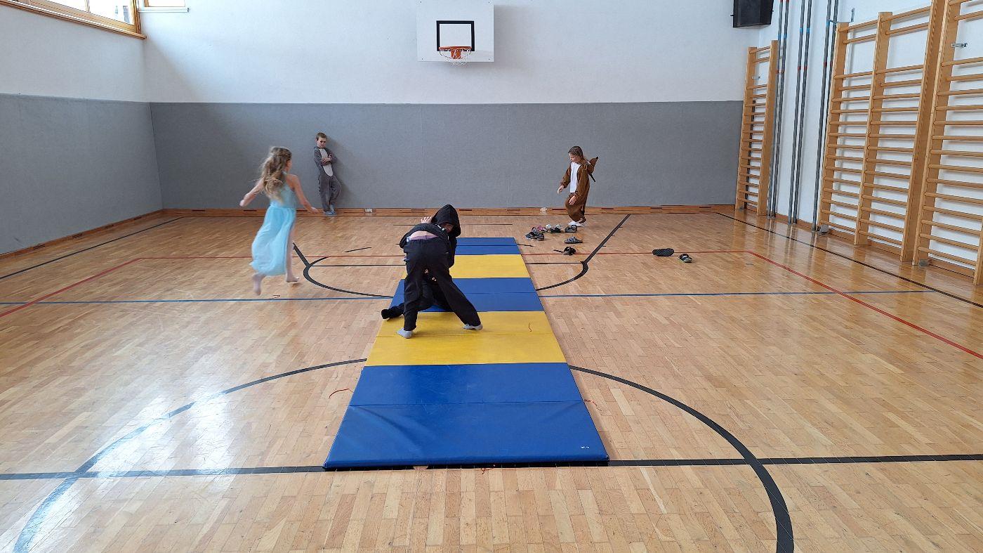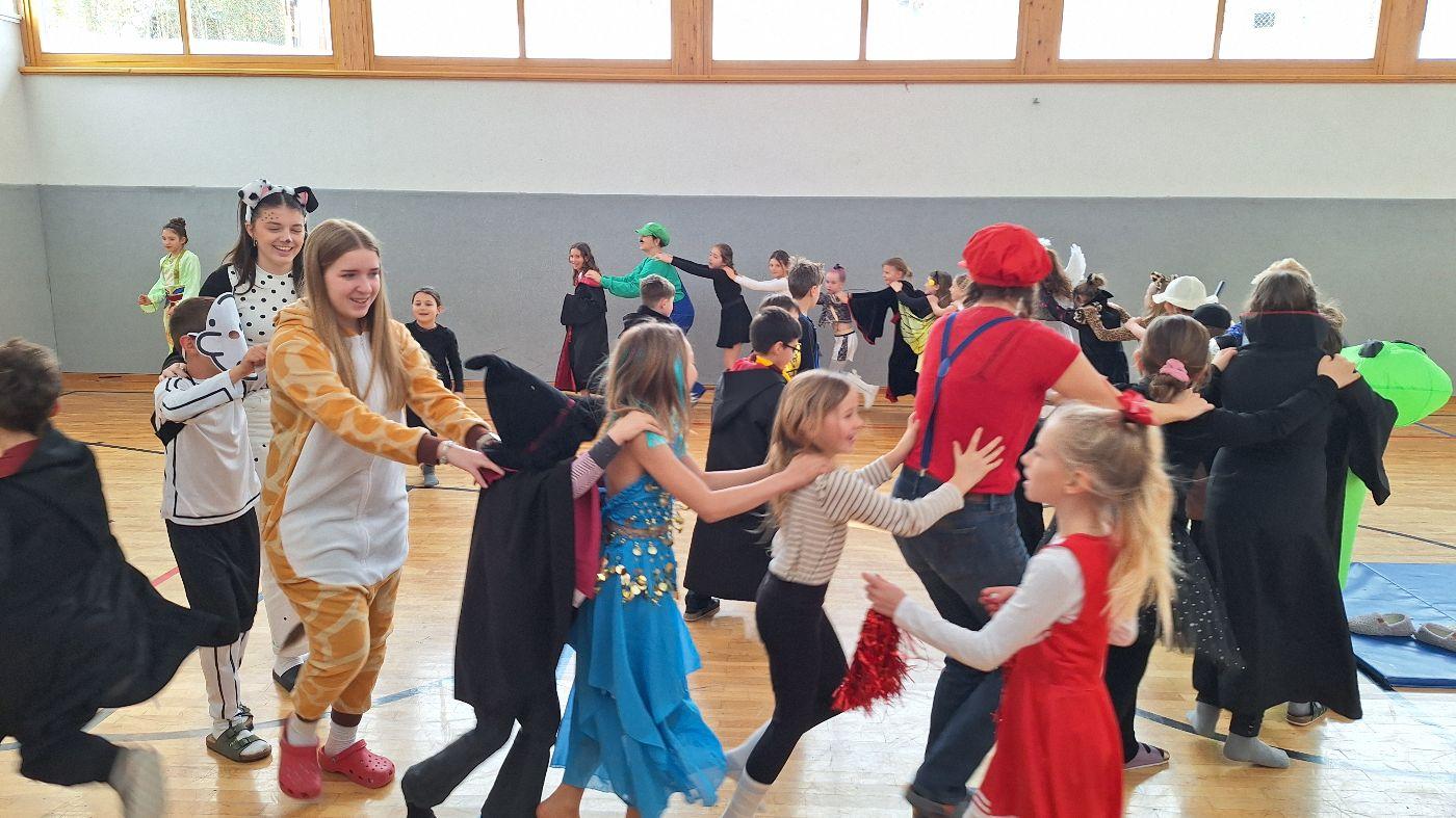 Am Faschingsdienstag kamen alle verkleidet in die Schule. Nach der Pause starteten wir mit unserer Faschingsfeier. Es gab Krapfen, die uns die Gemeinde spendierte (Danke!) und wir veranstalteten eine "Modenschau", bei der alle ihre Kostüme präsentieren konnten.