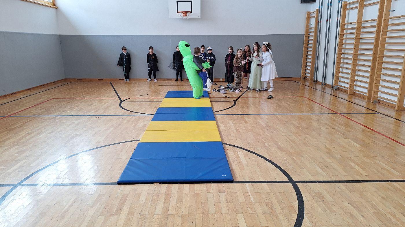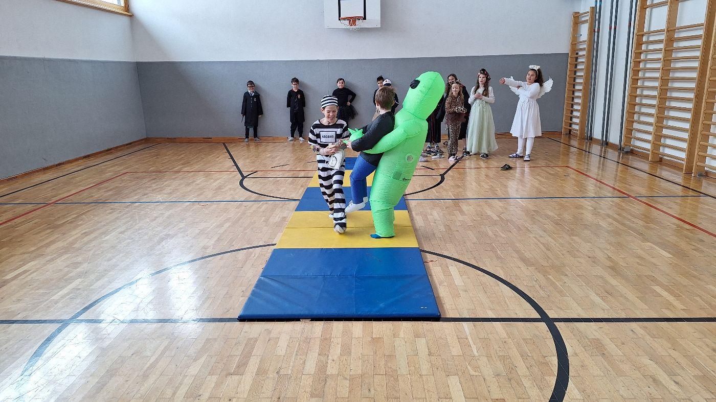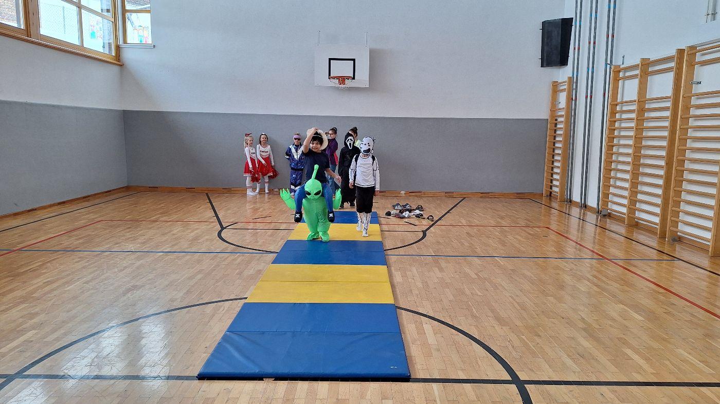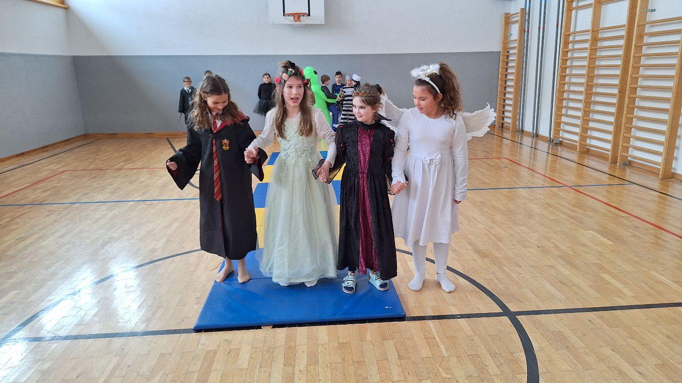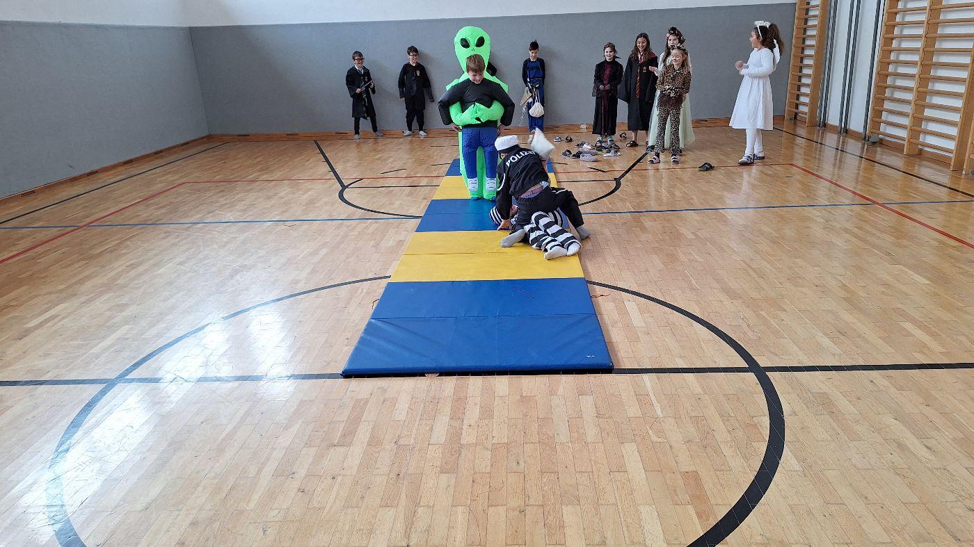 Am Faschingsdienstag kamen alle verkleidet in die Schule. Nach der Pause starteten wir mit unserer Faschingsfeier. Es gab Krapfen, die uns die Gemeinde spendierte (Danke!) und wir veranstalteten eine "Modenschau", bei der alle ihre Kostüme präsentieren konnten.