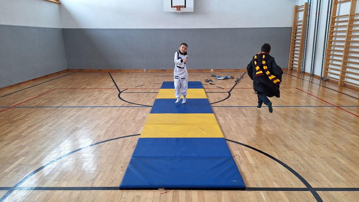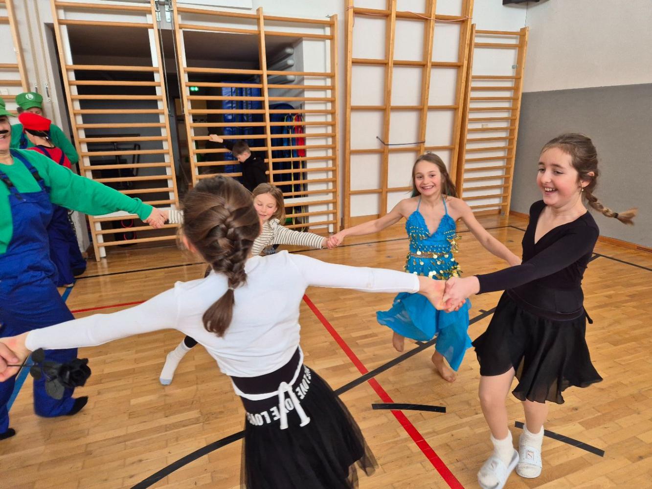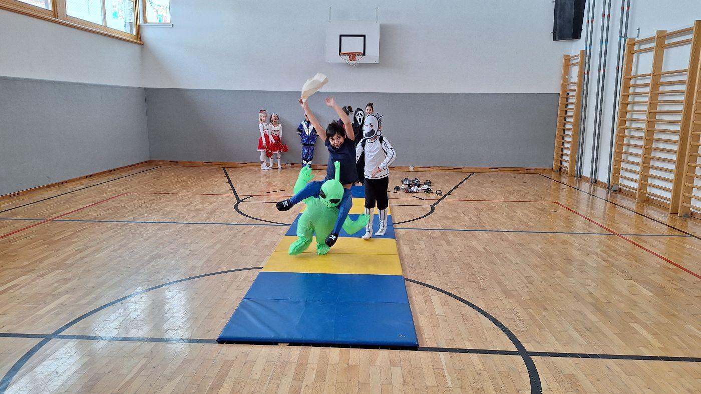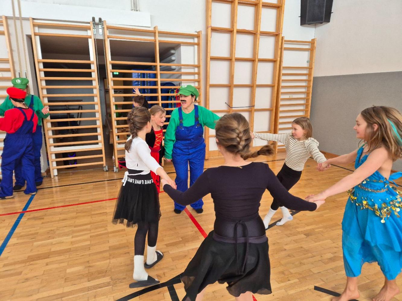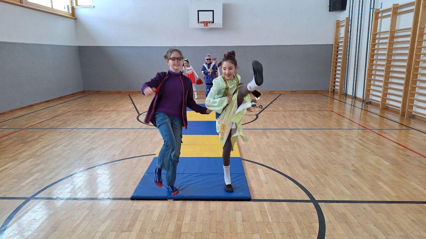 Am Faschingsdienstag kamen alle verkleidet in die Schule. Nach der Pause starteten wir mit unserer Faschingsfeier. Es gab Krapfen, die uns die Gemeinde spendierte (Danke!) und wir veranstalteten eine "Modenschau", bei der alle ihre Kostüme präsentieren konnten.