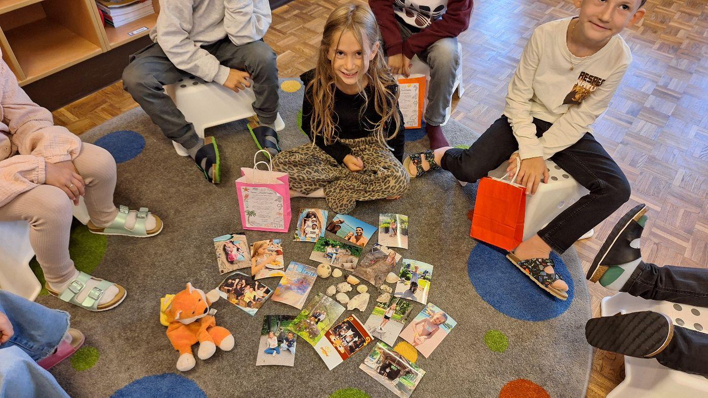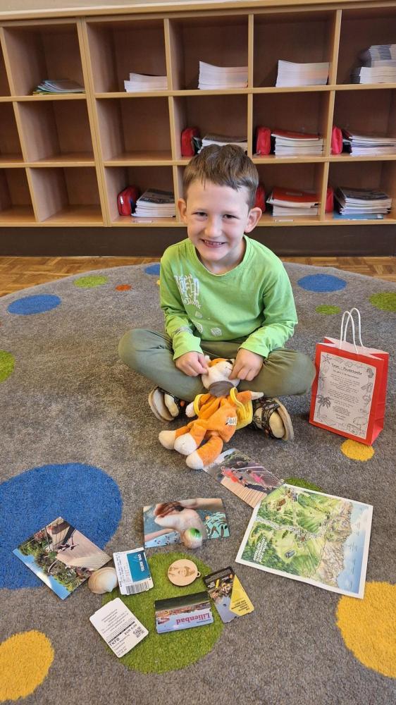 Ferienplaudertasche (2. Stufe) von VS Wildermieming 19. September 2025 1.+2.Stufe Über die Sommerferien wurde die Ferienplaudertasche mit wertvollen Dingen, Fotos und Erinnerungen gefüllt. Jedes Kind (und auch die Lehrerin) stellten ihre Plaudertasche dann am Schulanfang vor und erzählte von den aufregenden Erlebnissen im Sommer.