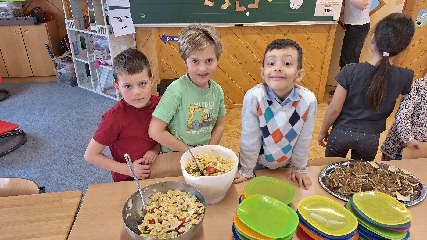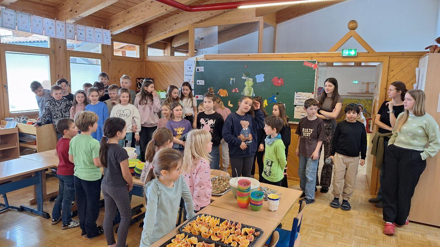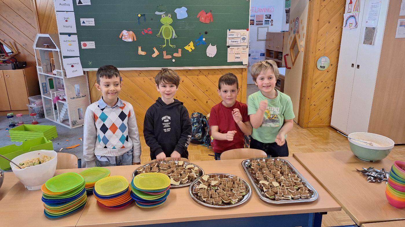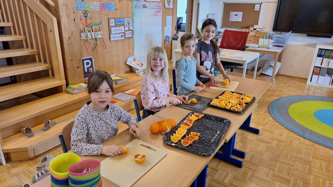 Gesunde Jause im Februar (1. Stufe) von VS Wildermieming 25. Februar 2026 1.+2.Stufe Im Februar bereitet die 1. Stufe für die ganze Schule die gesunde Jause zu.Diesmal gab es:Sandwich-SpießeNudelsalatNudelsuppeJoghurt mit MüsliOrangen