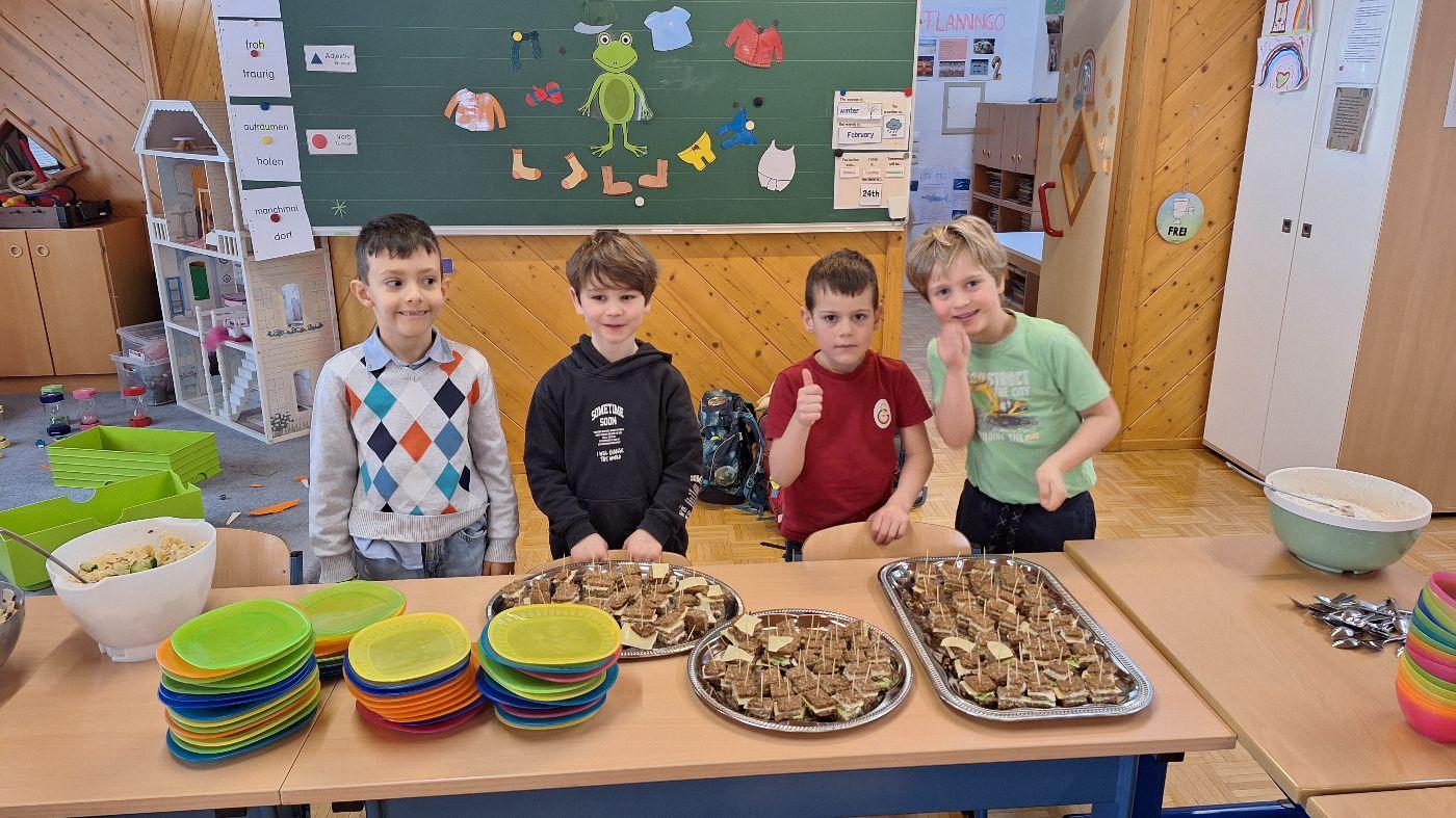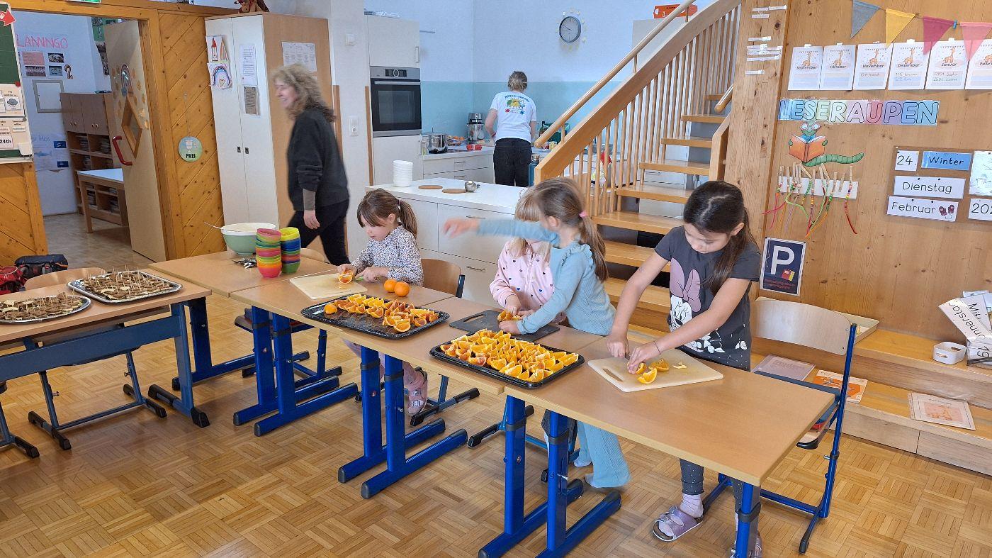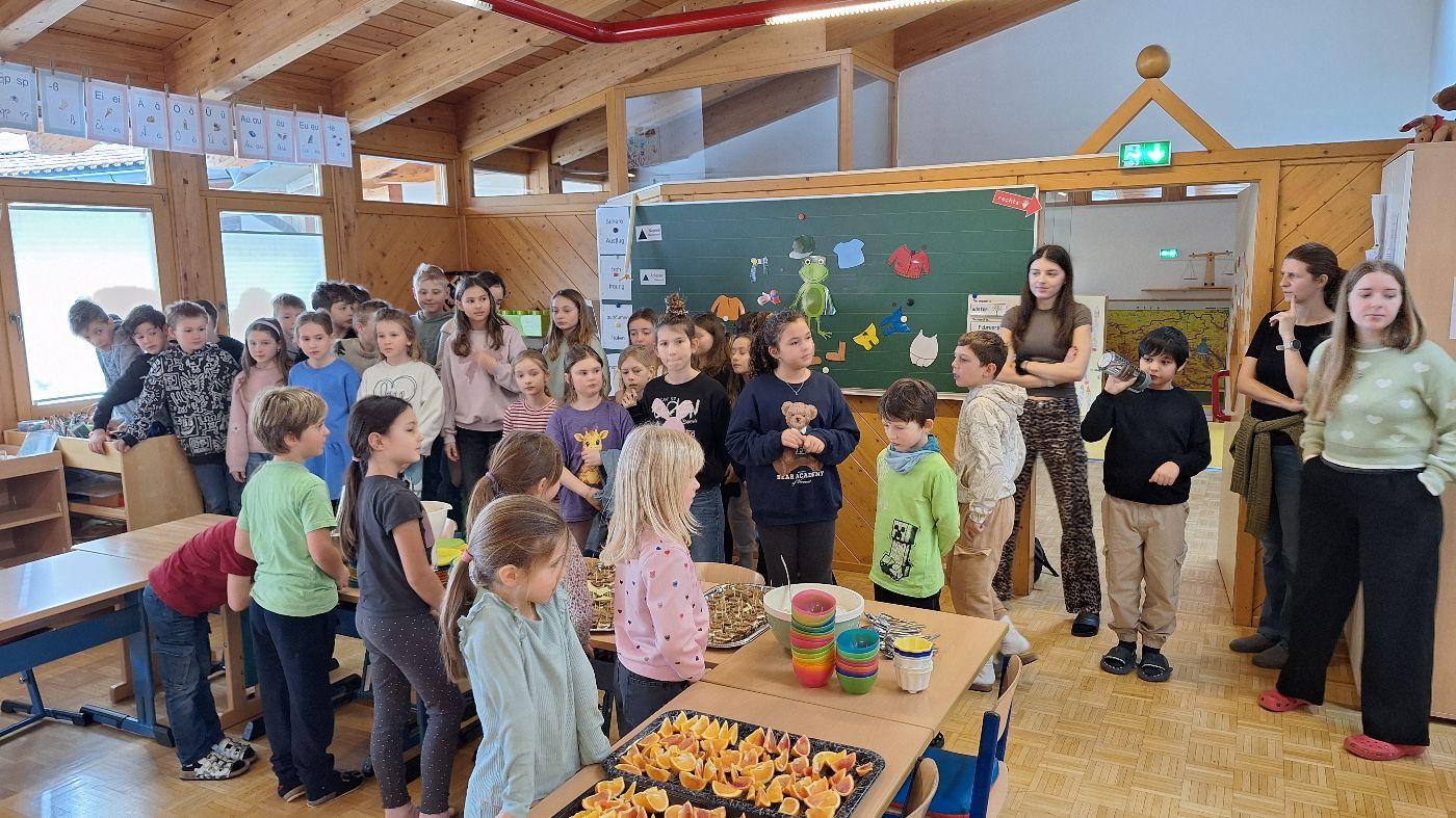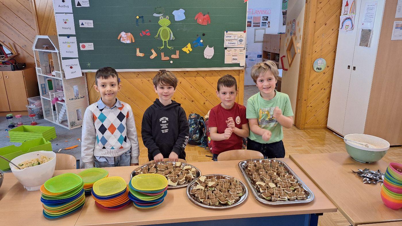 Gesunde Jause im Februar (1. Stufe) von VS Wildermieming 25. Februar 2026 1.+2.Stufe Im Februar bereitet die 1. Stufe für die ganze Schule die gesunde Jause zu.Diesmal gab es:Sandwich-SpießeNudelsalatNudelsuppeJoghurt mit MüsliOrangen