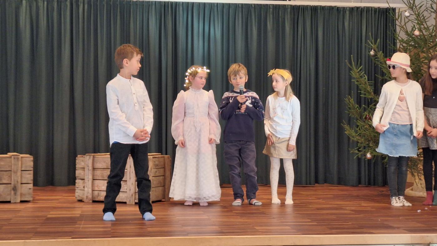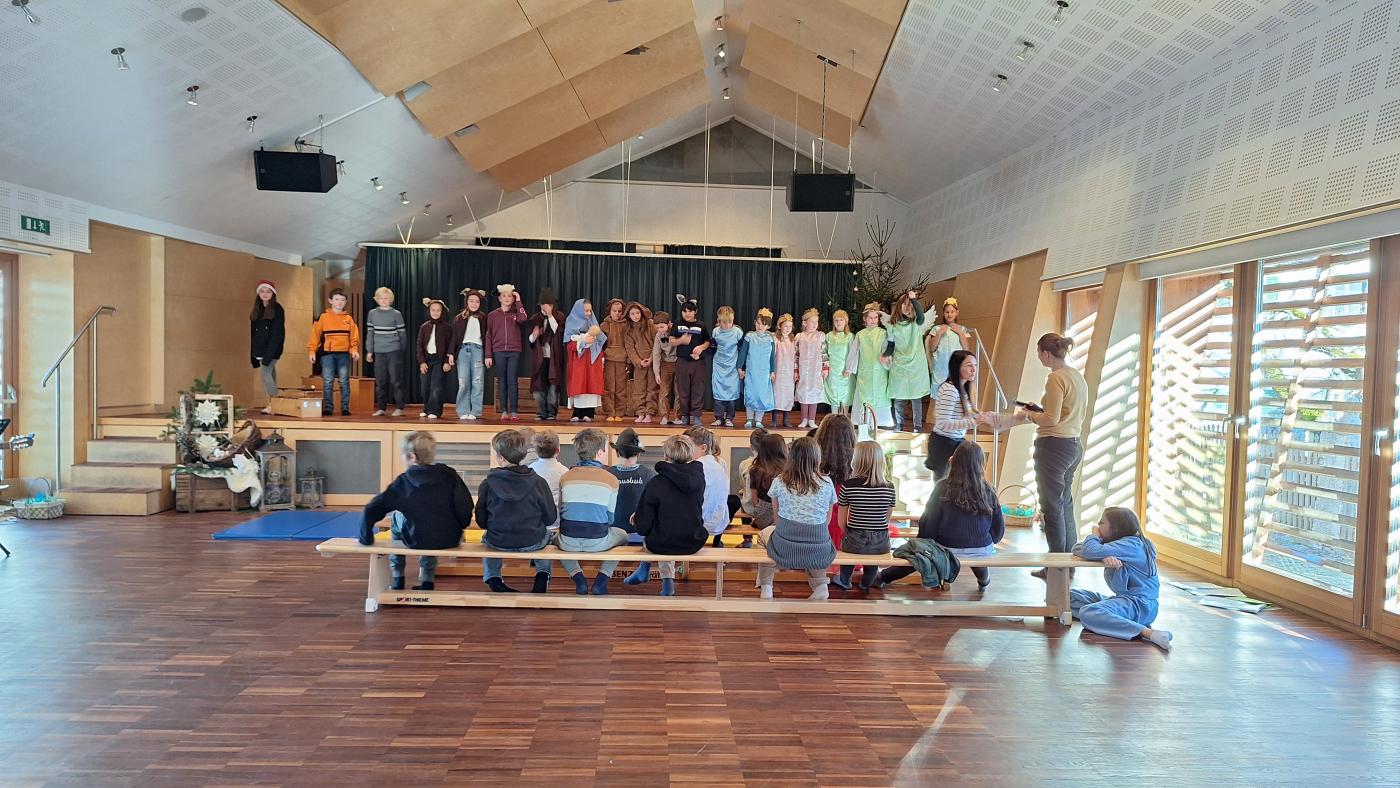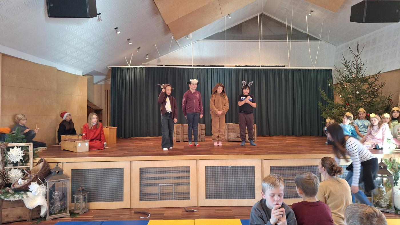Am Dienstag, den 17. Dezember 2024 findet um 18 Uhr unsere Weihnachtsaufführung im Gemeindesaal Wildermieming statt. Schon seit Wochen werden in den Musikstunden Lieder und Tänze gelernt und in den Deutschstunden Texte einstudiert und in Szene gesetzt. Wir freuen uns alle schon darauf, die Eltern, Großeltern, Verwandten und Freunden mit unserem Weihnachtsmusical, unseren Texten und Liedern, in weihnachtliche Stimmung zu versetzen. Seid gespannt!