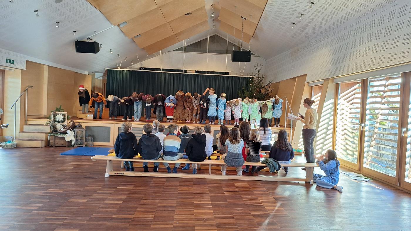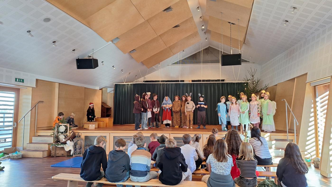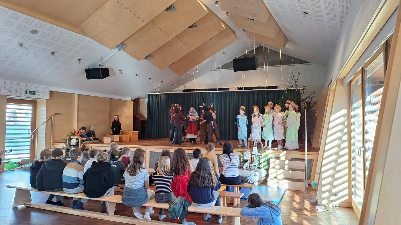 Am Dienstag, den 17. Dezember 2024 findet um 18 Uhr unsere Weihnachtsaufführung im Gemeindesaal Wildermieming statt. Schon seit Wochen werden in den Musikstunden Lieder und Tänze gelernt und in den Deutschstunden Texte einstudiert und in Szene gesetzt. Wir freuen uns alle schon darauf, die Eltern, Großeltern, Verwandten und Freunden mit unserem Weihnachtsmusical, unseren Texten und Liedern, in weihnachtliche Stimmung zu versetzen. Seid gespannt!