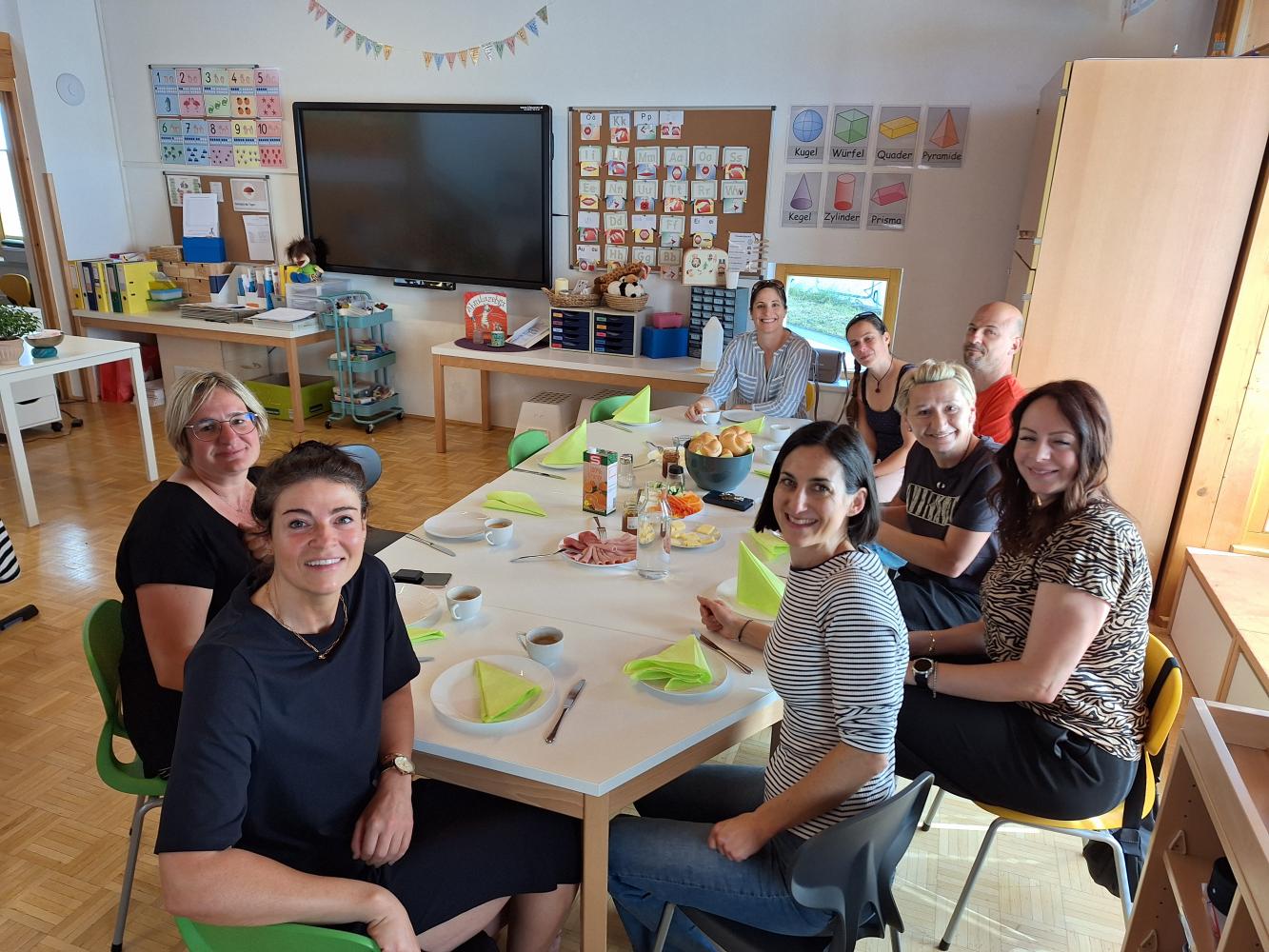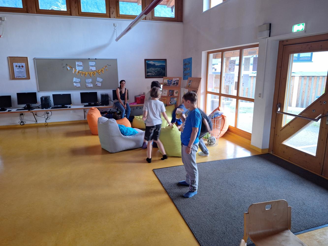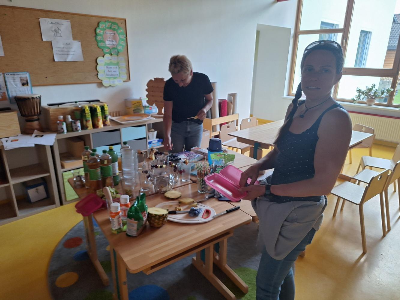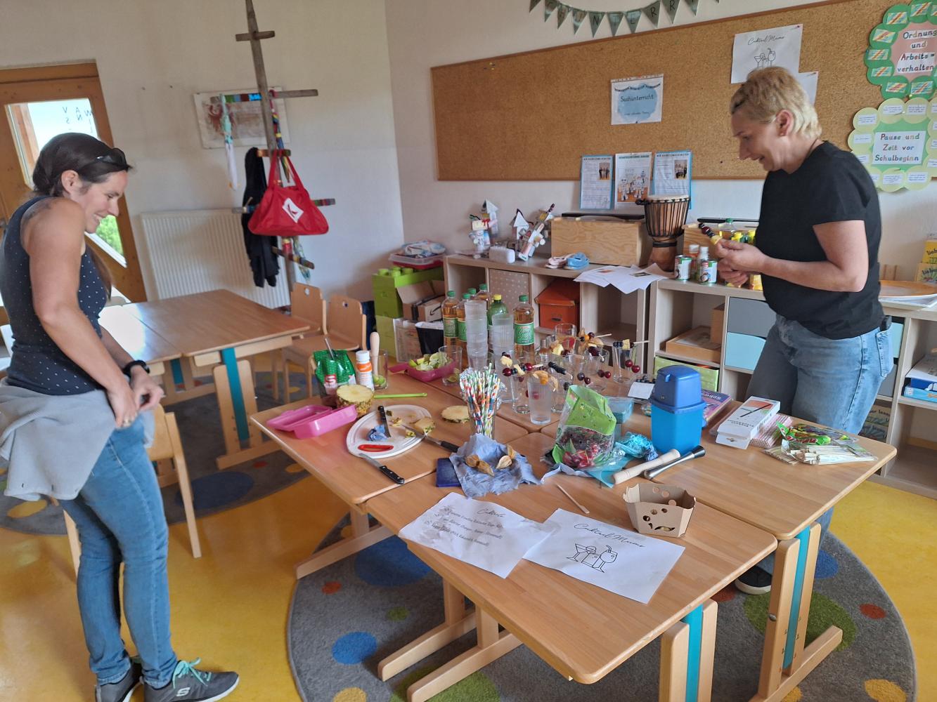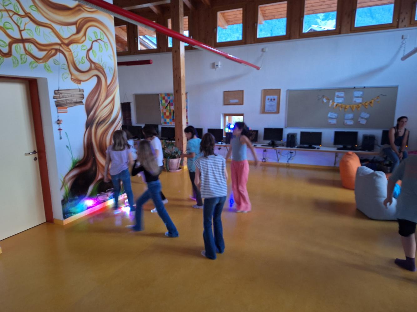 Die 4. Klasse übernachtete zum Abschluss in der Schule. Im Klassenzimmer wurde mit Matten und Schlafsäcken das Nachtlager aufgebaut. Zuerst gestellten wir uns Pizza und im Anschluss begannen wir mit dem Filmschauen. Zur Überraschung der Kinder bereiteten einige Eltern Kinder-Cocktails vor, die die Kinder bei einer kleinen Kinder-Party genossen. Später wurde der Film weiter geschaut und vor dem Schlafengehen erzählten wir uns noch Gruselgeschichten. Am nächsten Tag bereiteten die Kinder ein leckeres Frühstück vor, zu dem auch einige Eltern kamen.
